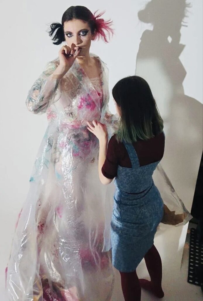 ✅Как-то раз меня моя учительница по биологии обвинила в том, что я делаю, когда увидела мои юбки из использованных пакетов и старого мерча. Хотя мне казалось, что это наоборот пропагандирует разумное потребление, переработку и т.д. Но это сложный всё-таки вопрос. Возможно, я действительно сделала бесполезную мусорную историю, которая создала ещё больше мусора на планете.. Отвечая конкретно на этот вопрос, наверное, скажу, что влияет тем, что мне хочется делать работы, которые посвящены этой проблеме.