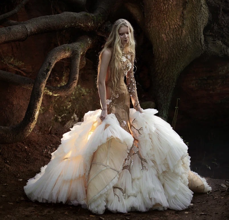 Коллекция «Девичьи грезы» — легкая, романтичная, эфемерная, окутанная мечтами и фантазиями о полете, о детской потерянной легкости, о бесконечной весне, розовых садах, запахе лета. О феях и волшебстве.