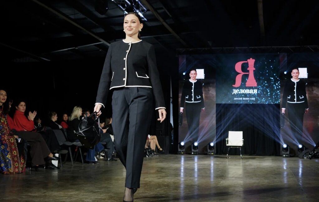 На подиуме – реальные женщины-предпринимательницы, демонстрирующие, как деловой образ может быть одновременно строгим, женственным и выразительным.