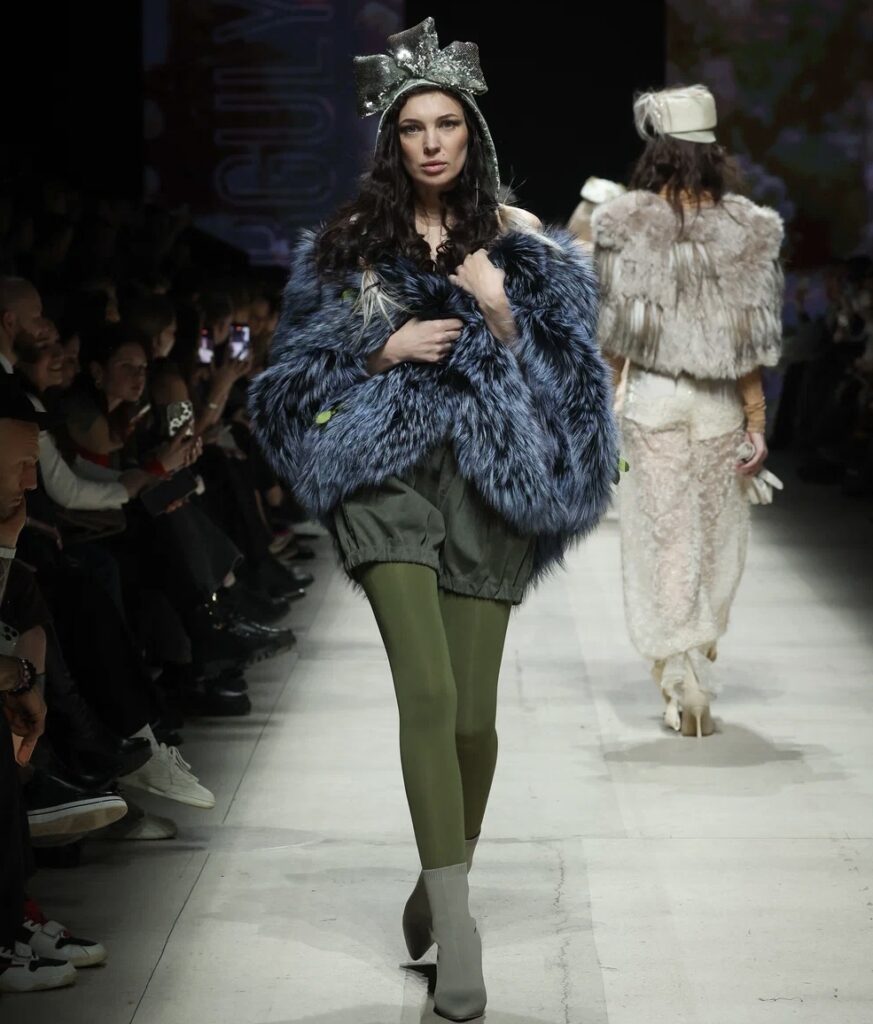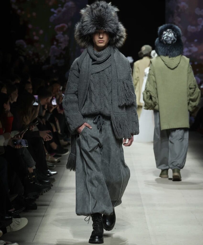 силуэтам, мягким фактурам и приглушенной палитре. В качестве акцентных элементов выступили меховые шапки-ушанки, головные уборы из разных эпох, пушистые накидки, акцентные кейпы и 3D-аппликации.