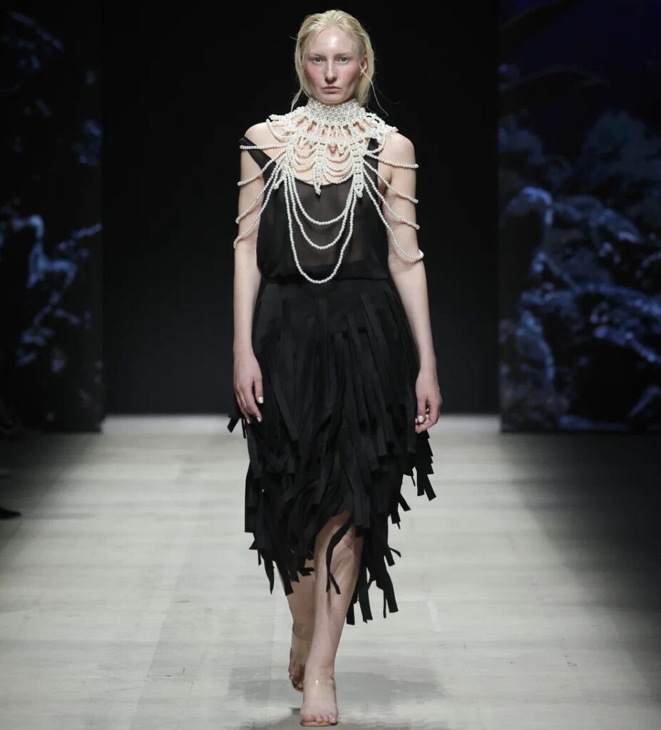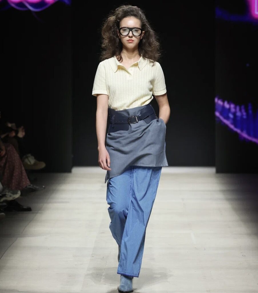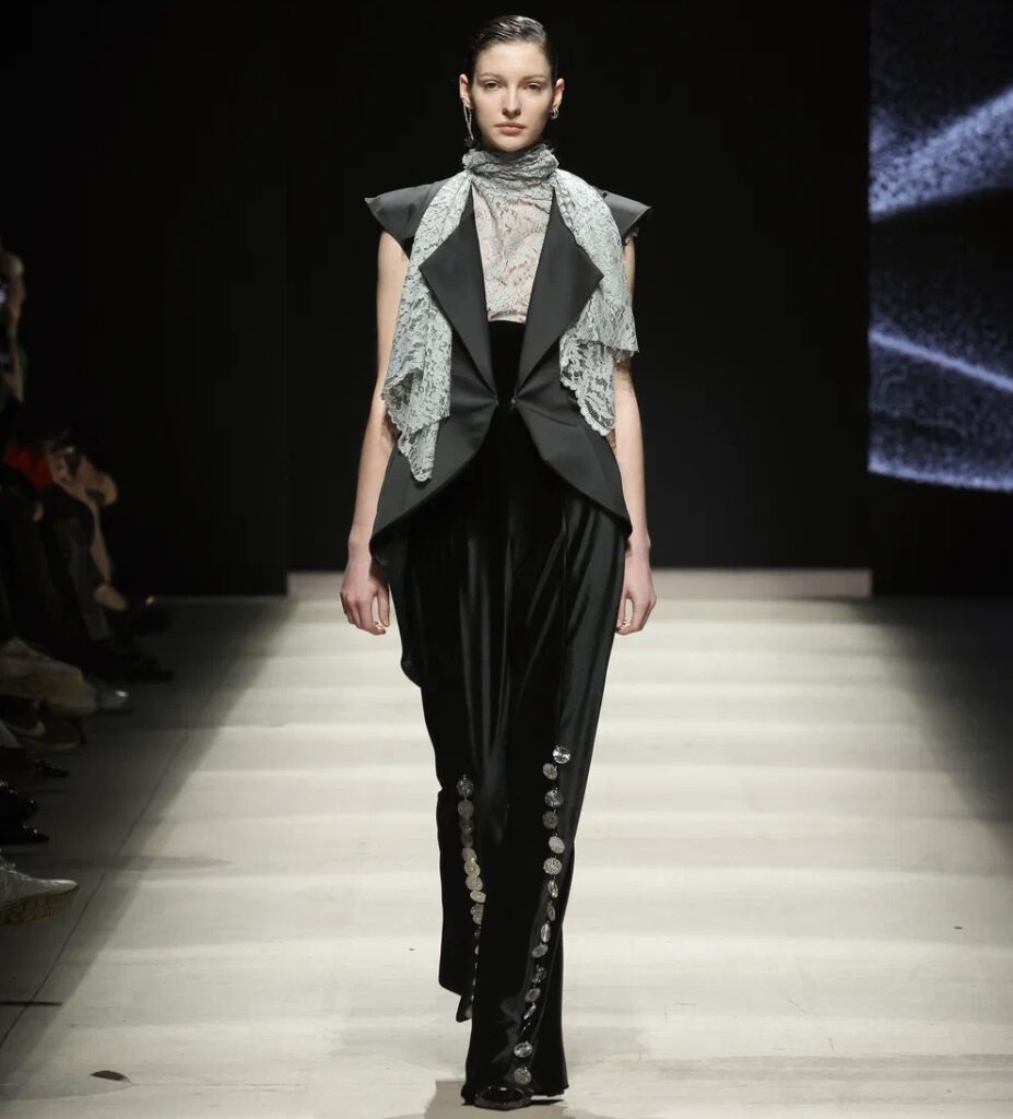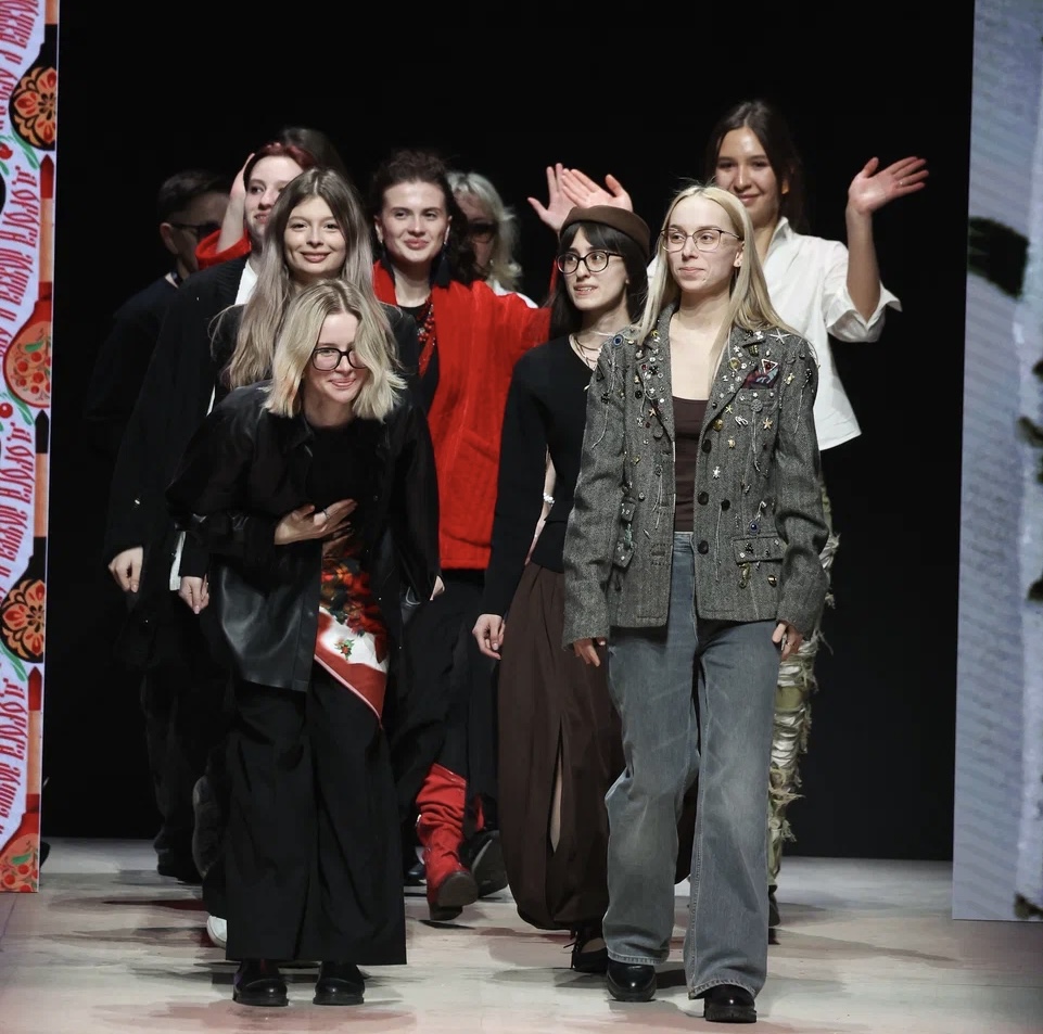 Дизайнеры вплели в ткань коллекции множество культурных кодов — от костюмов, расшитых монистами, до мужских юбок, отсылающих к шотландским корням. Переосмысливая исторические образы, студенты проанализировали техники прошлого, эволюцию материалов и технологии швейного производства, чтобы создать актуальные решения, обращенные в завтрашний день. Завершился показ образами с театральным переосмыслением русского ДНК.