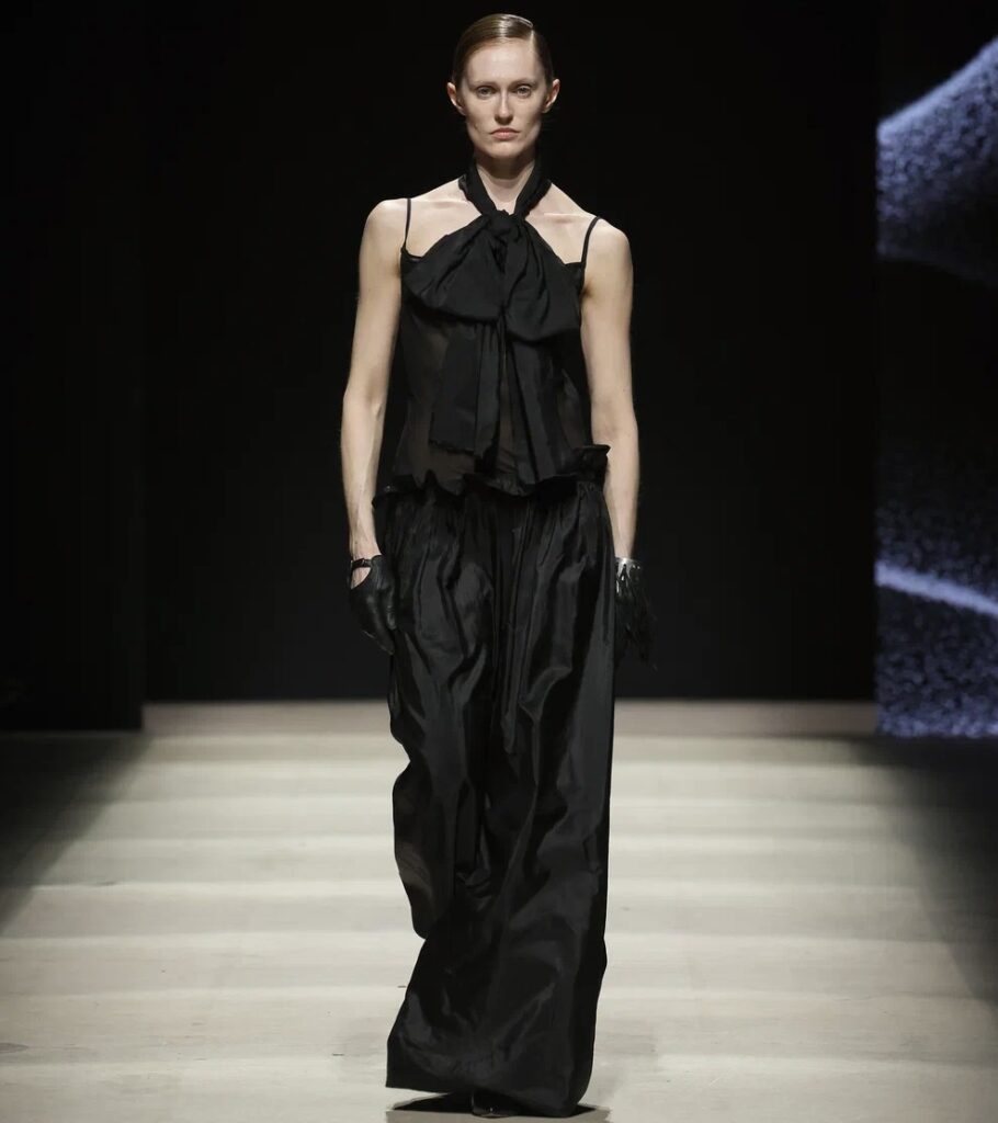На подиумах шестого дня фольклорные образы сменялись деконструкцией, природные мотивы — урбанистической графикой, а преппи-эстетика — театральной экспрессией. Здесь исторические коды растворялись в современных силуэтах, классика обретала новую динамику, а игра фактур — от легких полупрозрачных тканей до плотных структурных материалов — становилась главным выразительным инструментом. В это же время в VK Лектории говорили о моде будущего и трансформации индустрии, а в ИИ-примерочной от ГигаЧата технологии продолжали стирать границы между подиумом и реальной жизнью, позволяя гостям примерить тренды нового сезона.