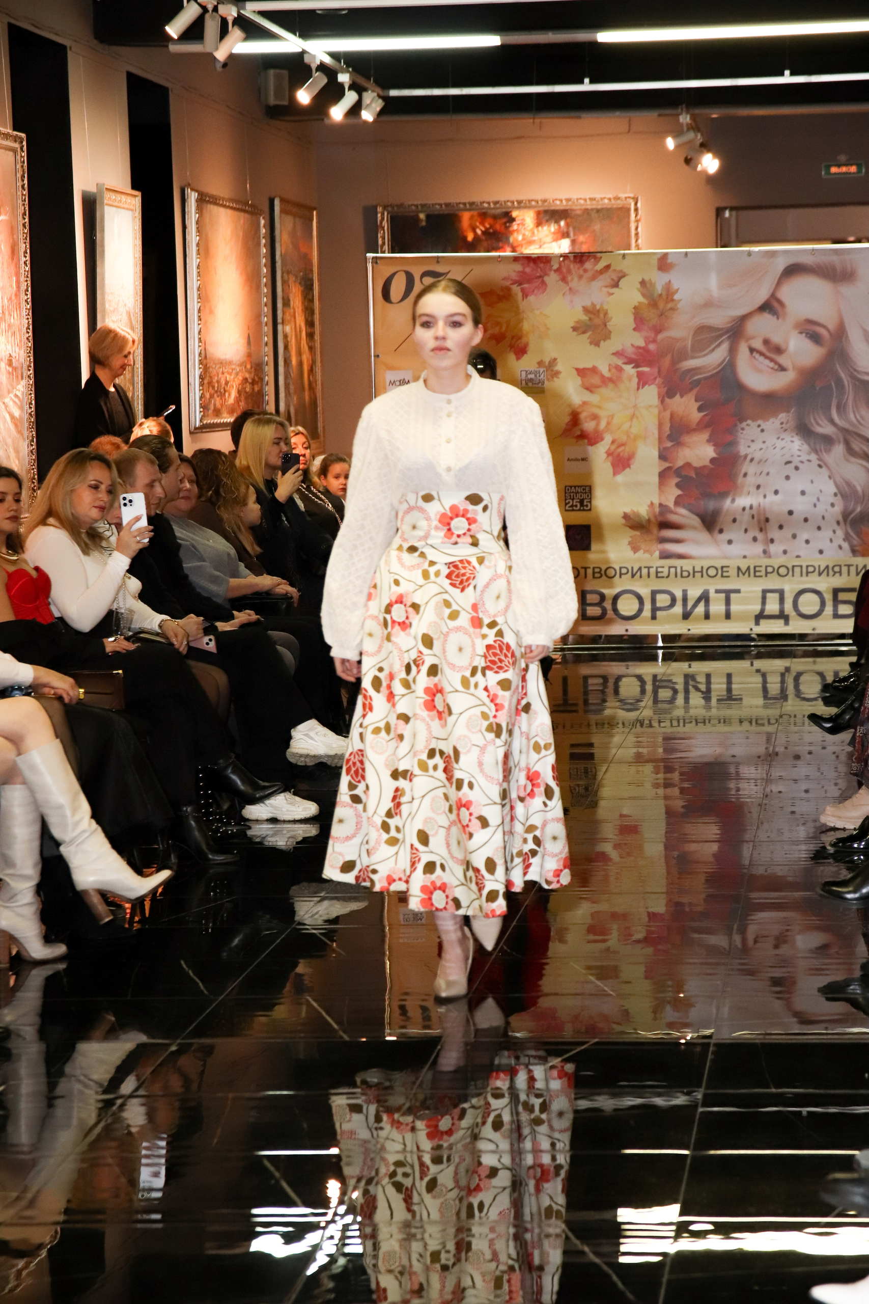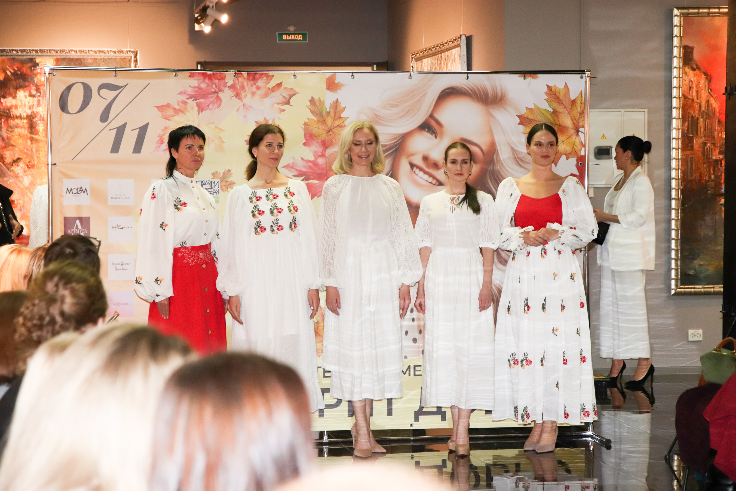 Гости мероприятия окунулись в красивые показы брендов женской одежды CHER NEVA, Татьяны Тижиной (бренд Tishina), designer KATTICORS, бутика Nicole Alexis.