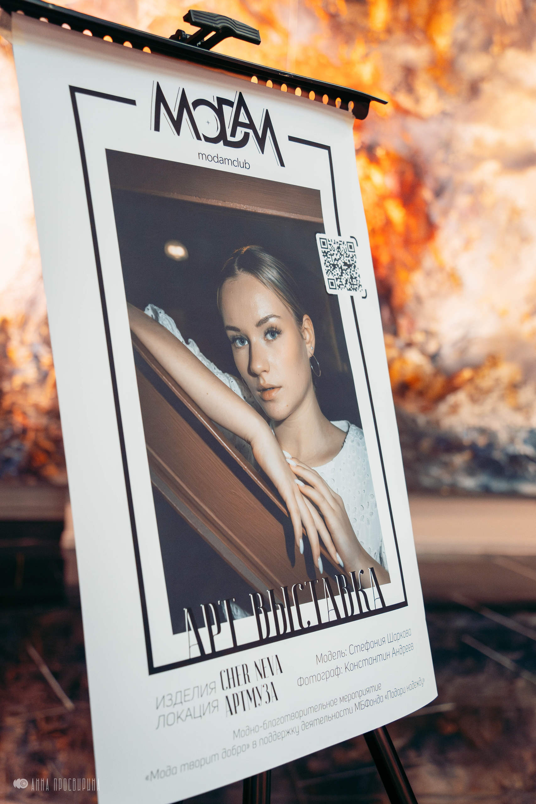 Гости мероприятия приняли участие в «добром аукционе» открыток девушек проекта и модельного агентства modamclub, выполненные в рамках модельного курса проекта, в пространстве АРТМУЗА, в изделиях бренда CHER NEVA, все вырученные средства были так же направлены в МБФонд «Подари надежду», а так же любовались арт выставкой, открытой по этому поводу.