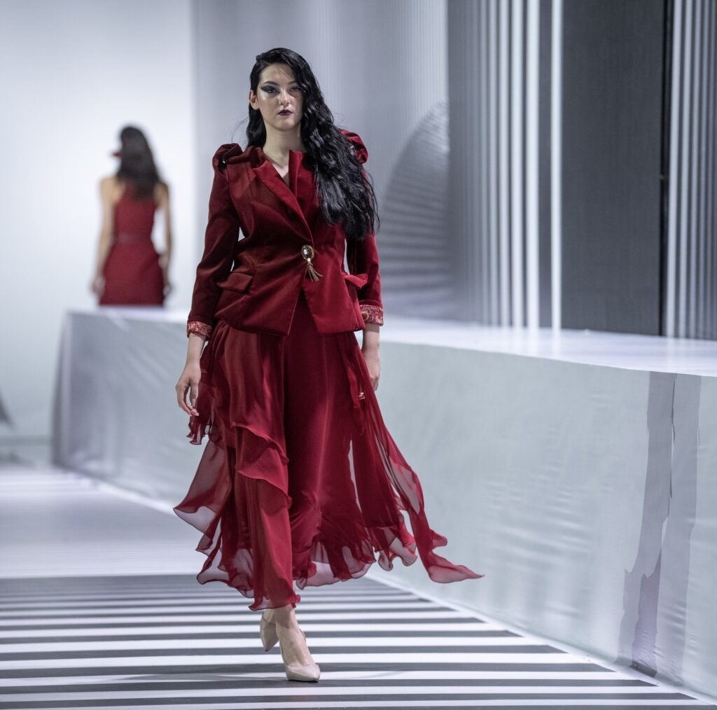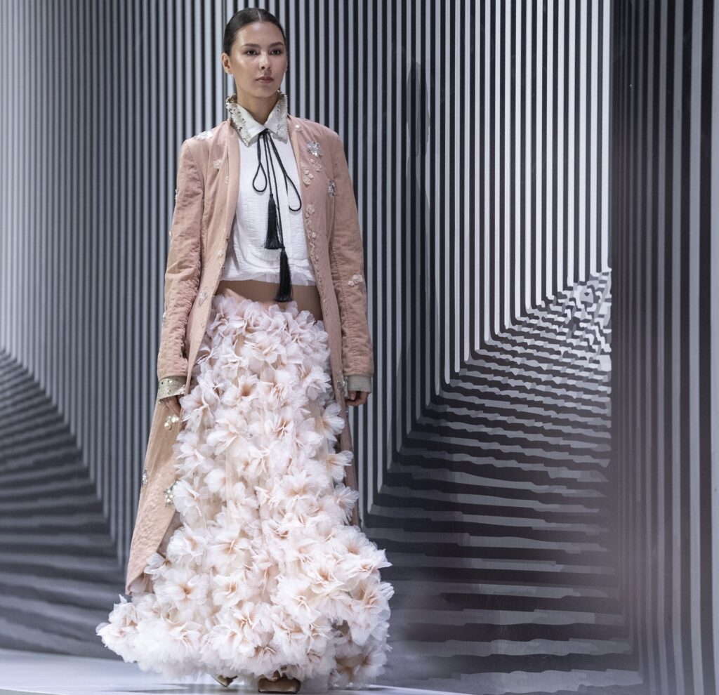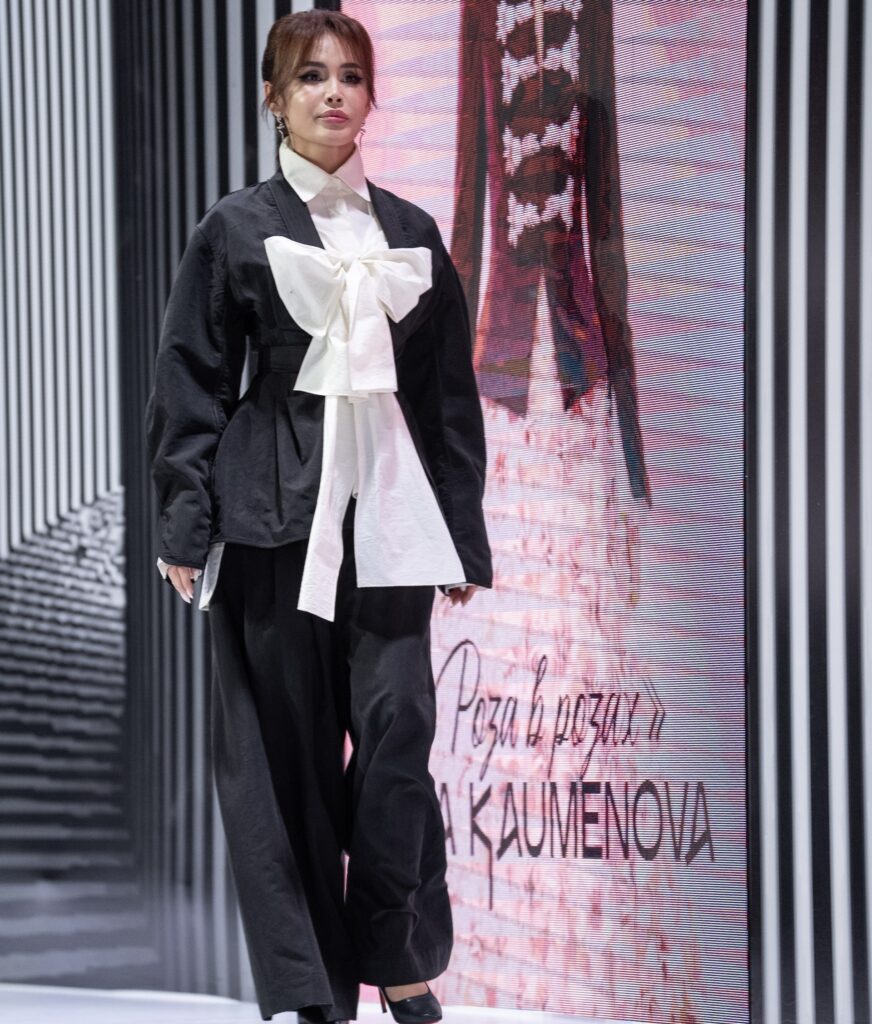 Одним из заметных показов дня стала коллекция «Роза в розах» от Аиды Кауменовой. Коллекция была выстроена как цельная история, в которой через цвет, фактуры и силуэты раскрывался образ современной женщины — мягкой, но внутренне сильной.