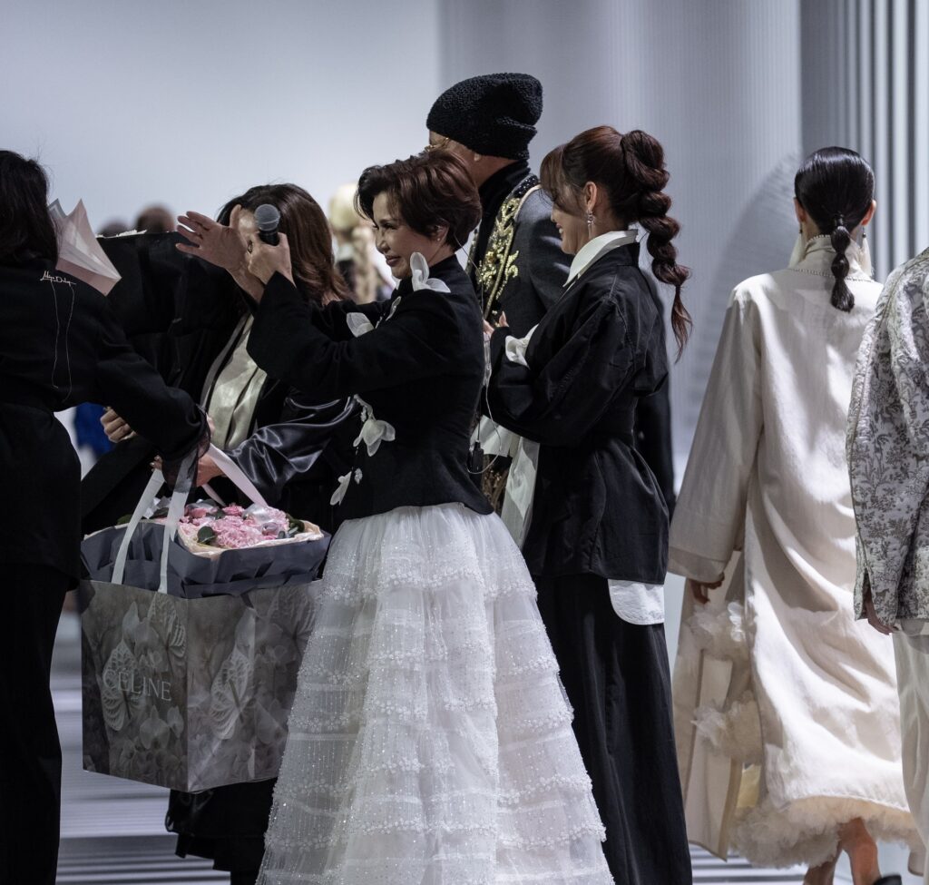 Особым моментом показа стало выступление Розы Рымбаевой, которая вышла на подиум и исполнила песню “Любовь настала” в рамках шоу. Её появление стало органичной частью постановки и усилило эмоциональное звучание всей коллекции.