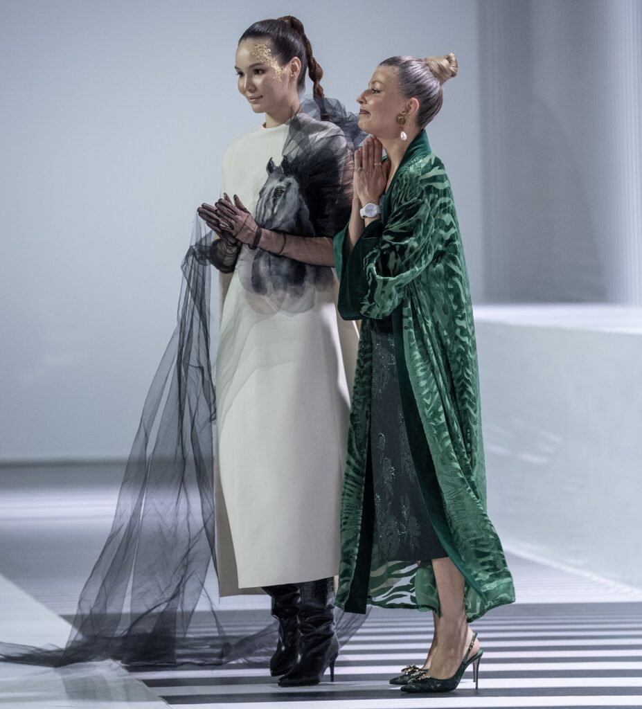 Завершением третьего дня и всей недели моды стал показ дизайнеров из Кыргызстана — ZALKAR & IRINA ILIUSHENKO с коллекцией «ҮРКӨР». Вдохновлённая кыргызской легендой, коллекция задала особое настроение финалу и стала символичным этническим завершением сезона.
