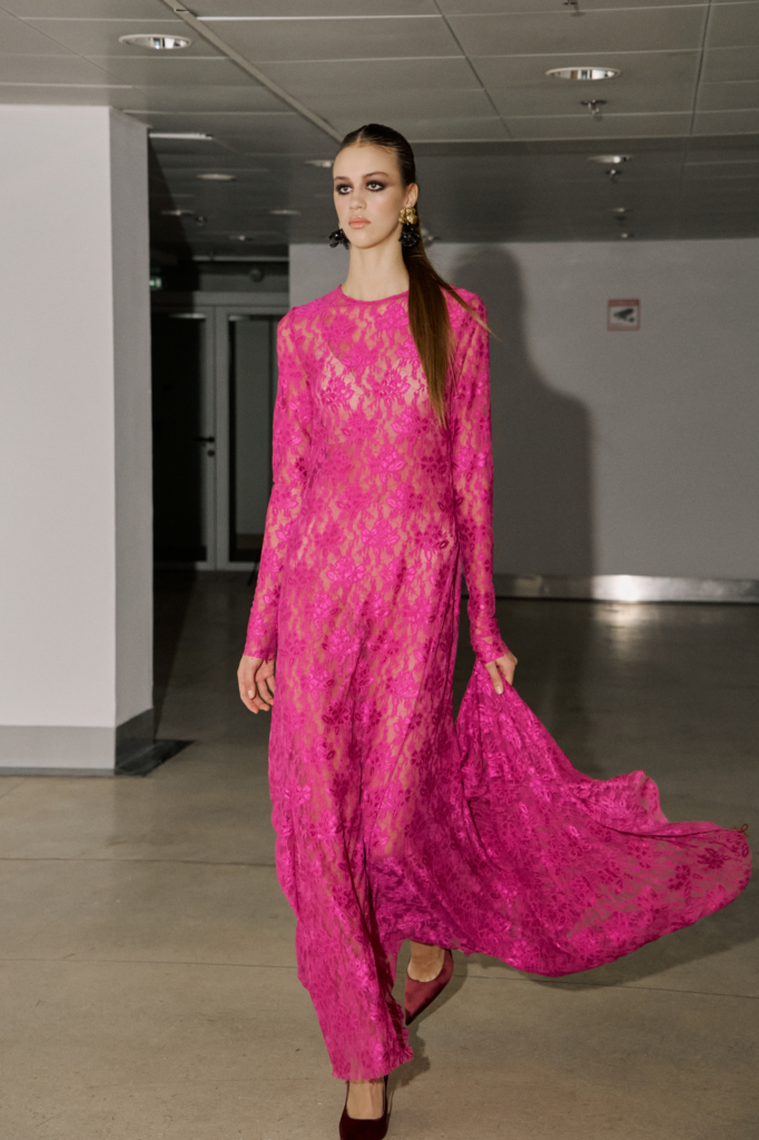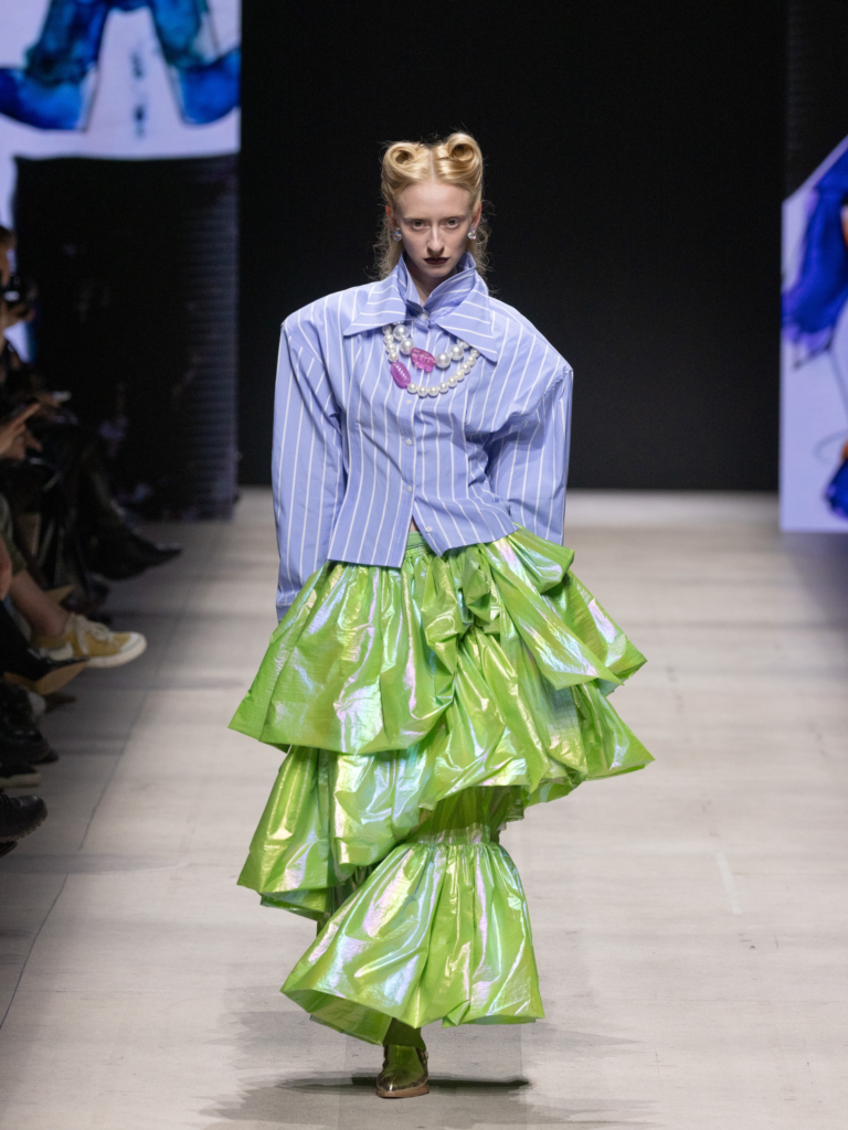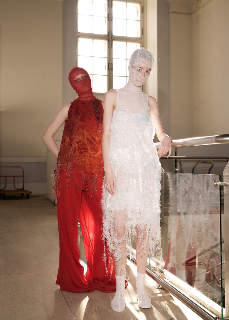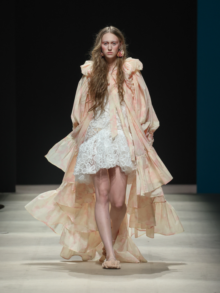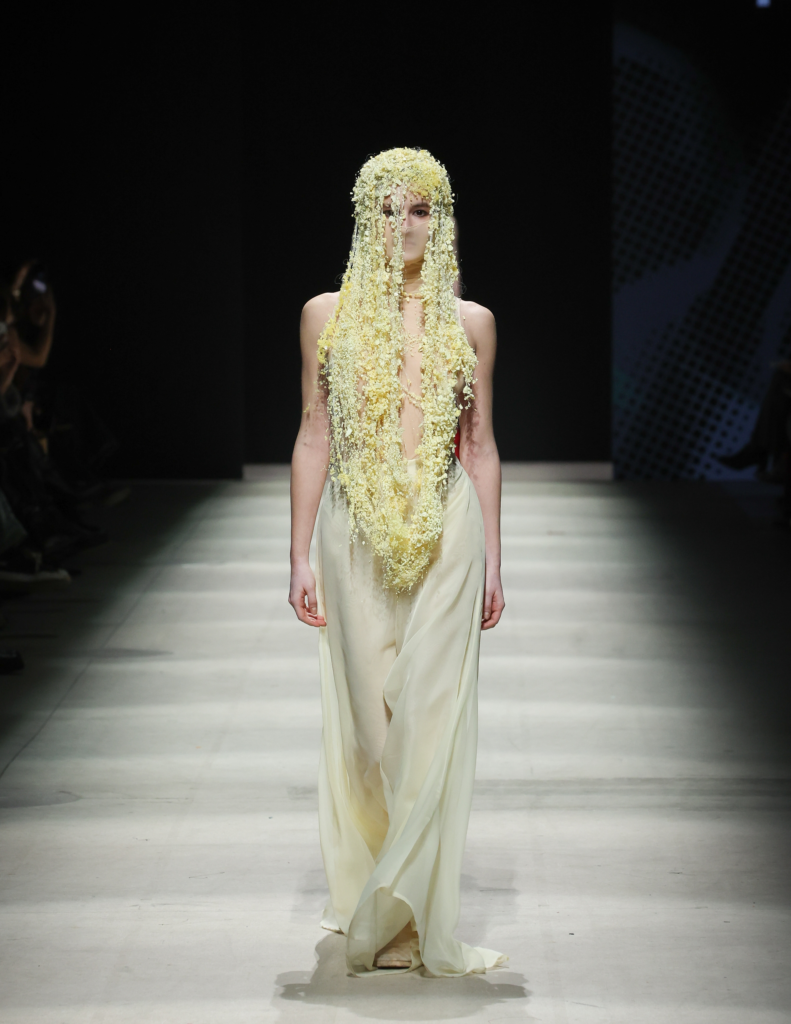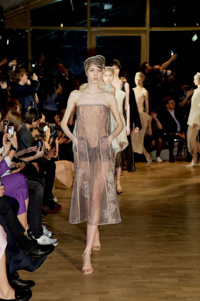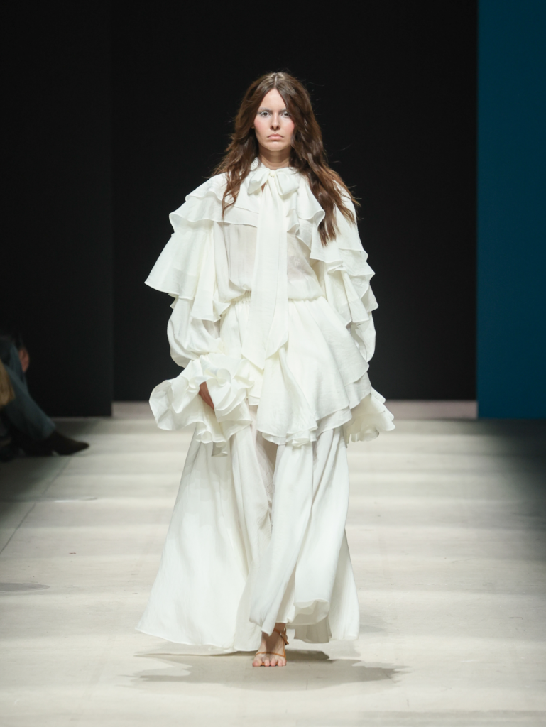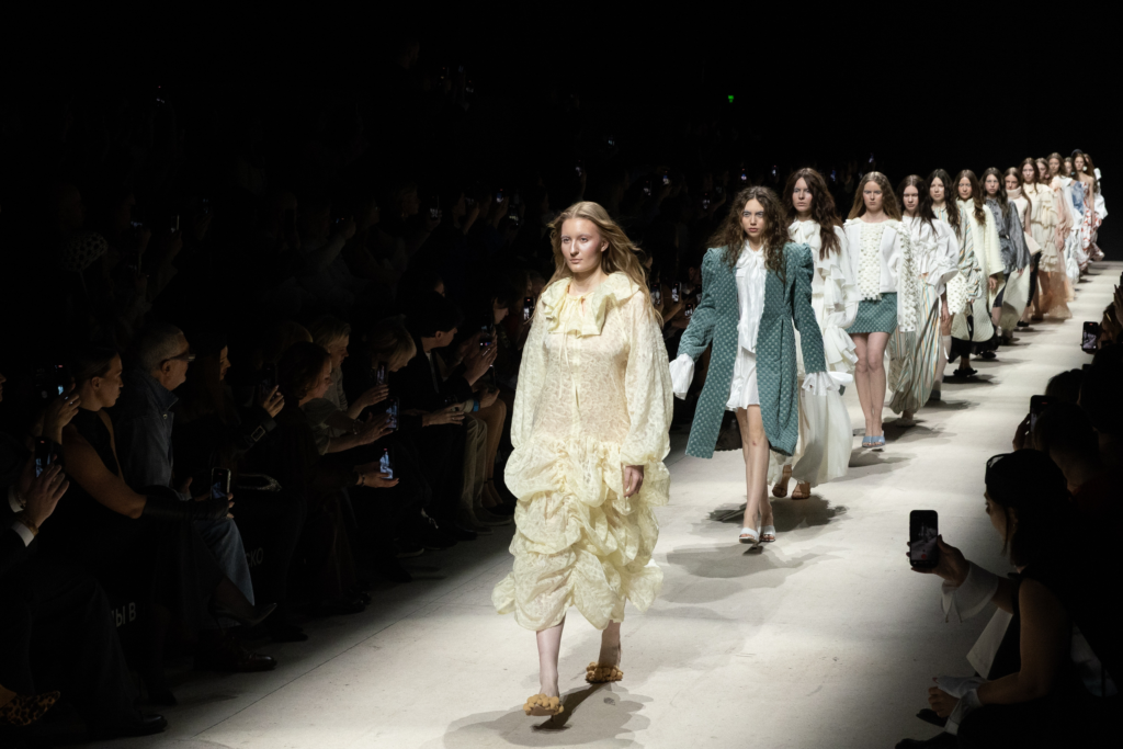 На подиуме зрители увидели семь разных коллекций, где каждая повествует свою уникальную историю и охватывает широкий спектр тем: от кукольных образов до средневековья в духе модернистского касл-кора. Среди представленных линеек — «Безмолвие», «Алхимия», «Хрупкость памяти», «На вырост», «Сюзане», «Билет в прошлое» и «Биотрансформация». Каждая отличается сложными и уникальными силуэтами, символизмом, а также цветовыми и декоративными экспериментами.