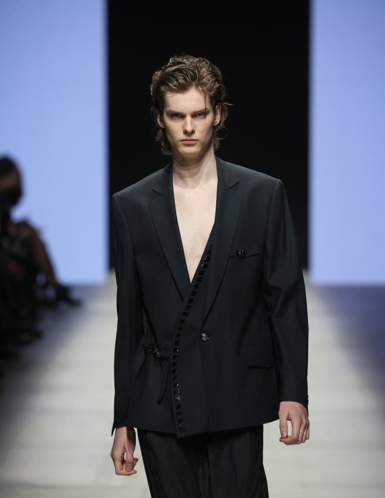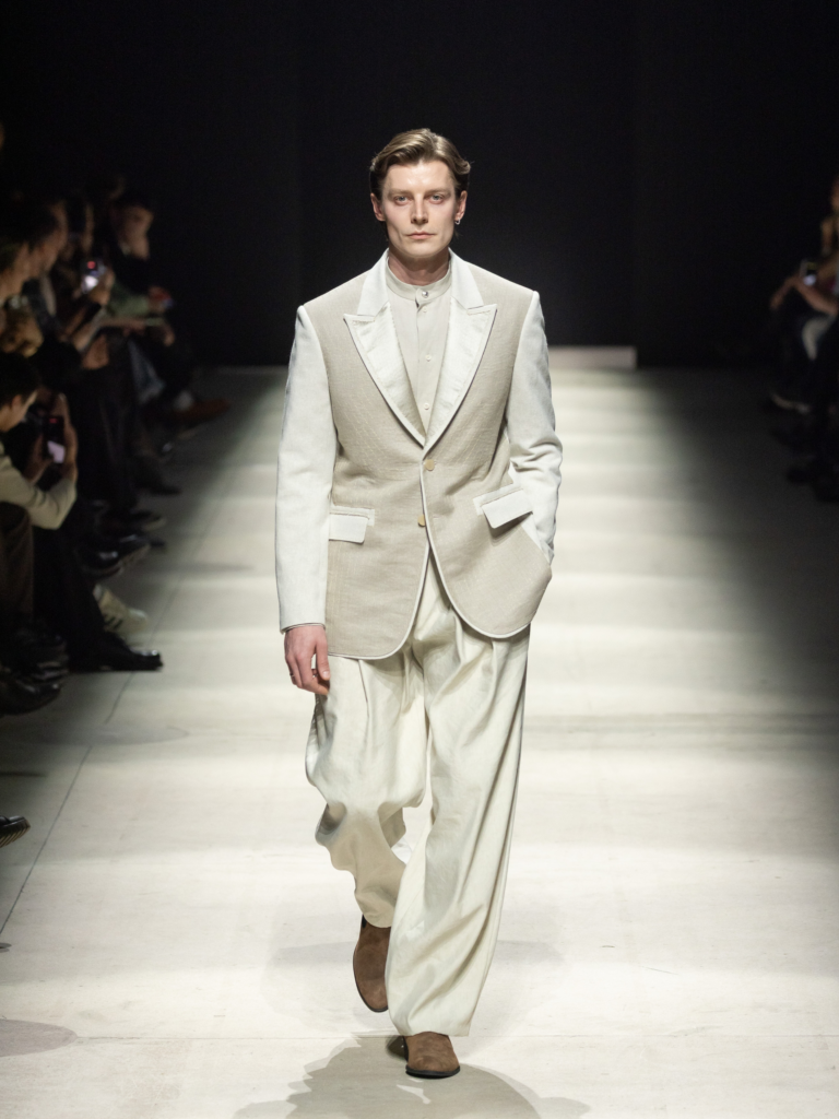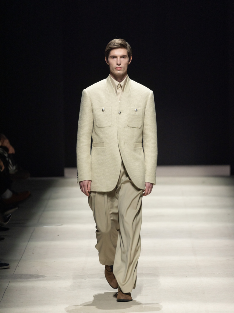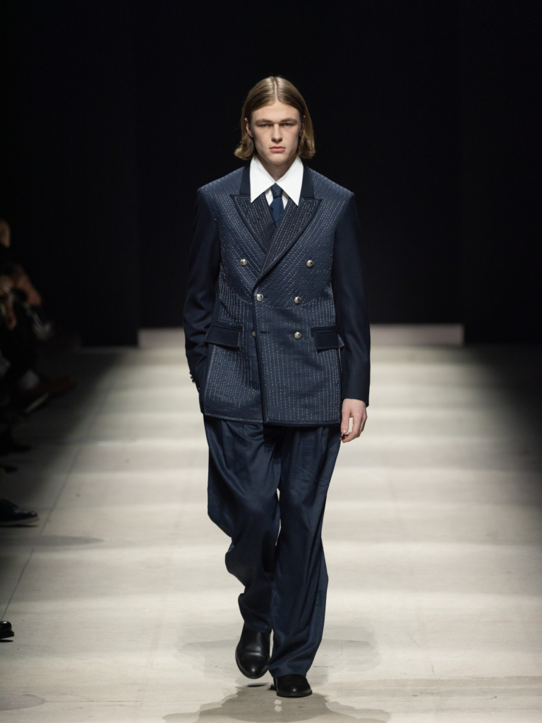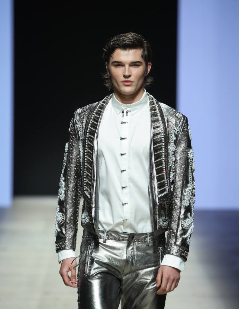 Костюмы из мериносовой шерсти и рубашки с галстуками соседствуют с пиджаками, расшитыми пайетками и золотой ниткой. Линейка одежды показывает, как мужчина может жить роскошно и получать удовольствие от каждого тактильного и визуального момента.