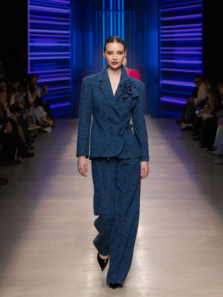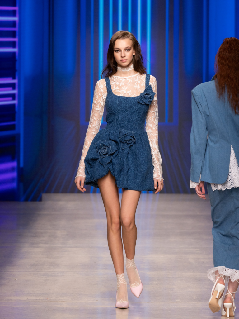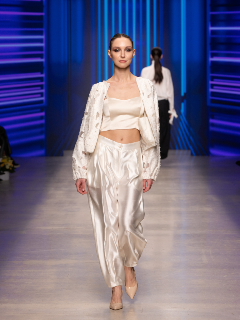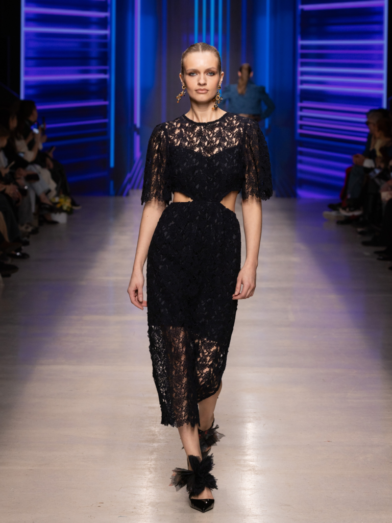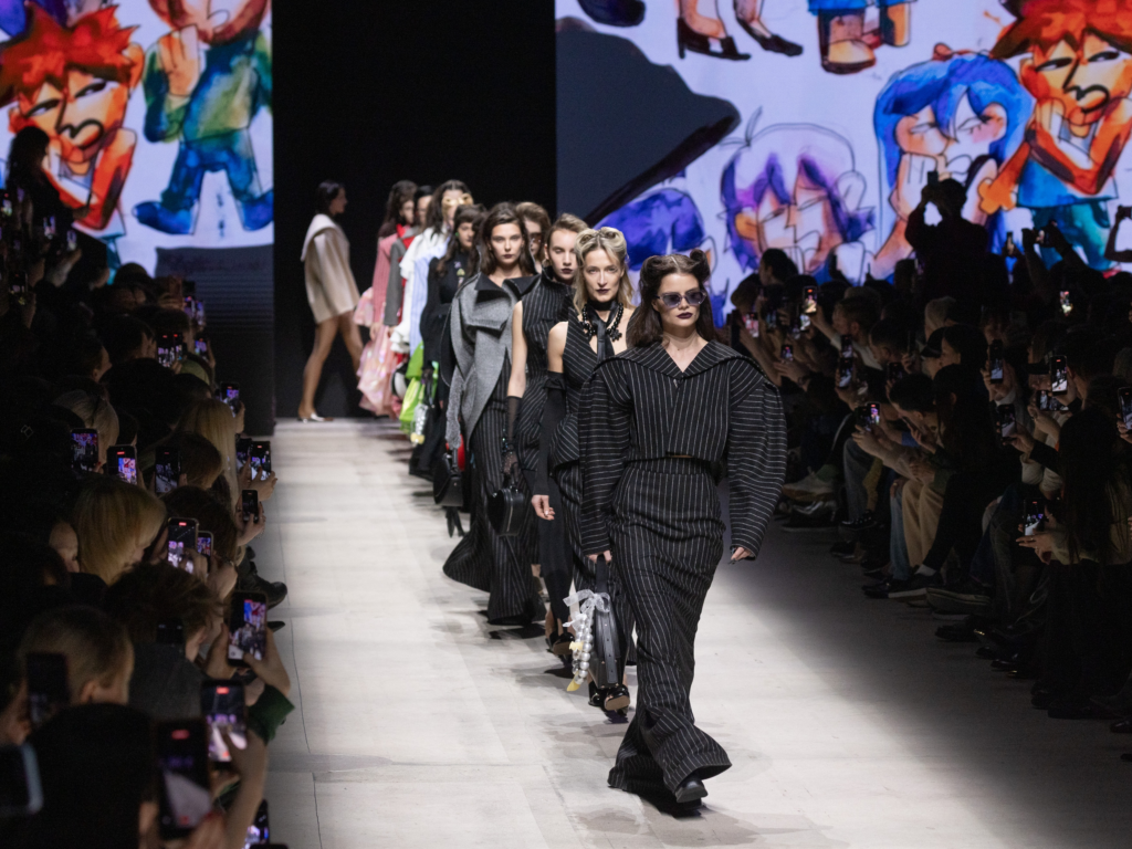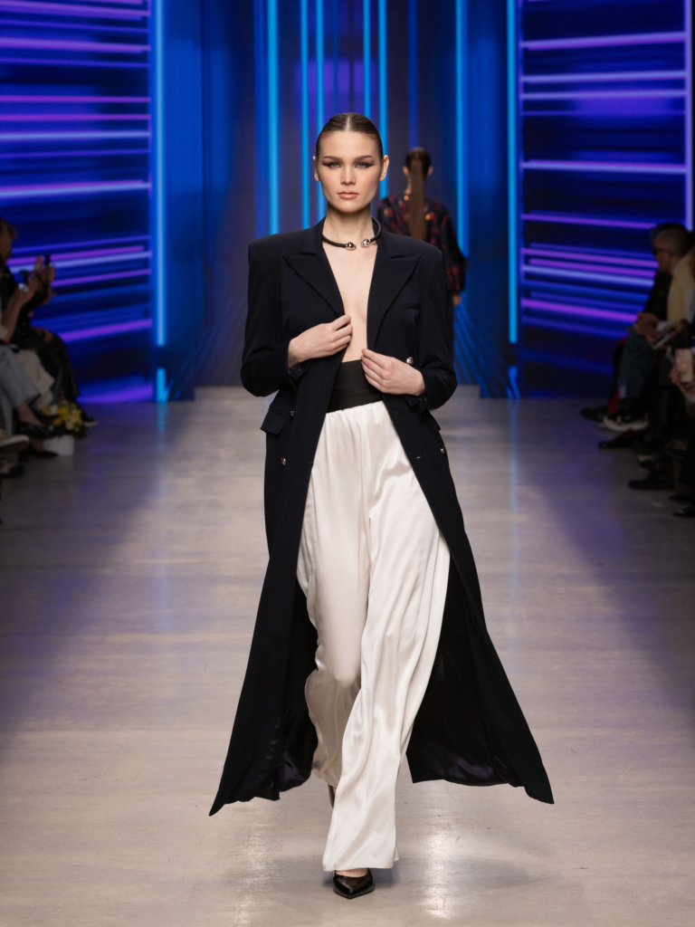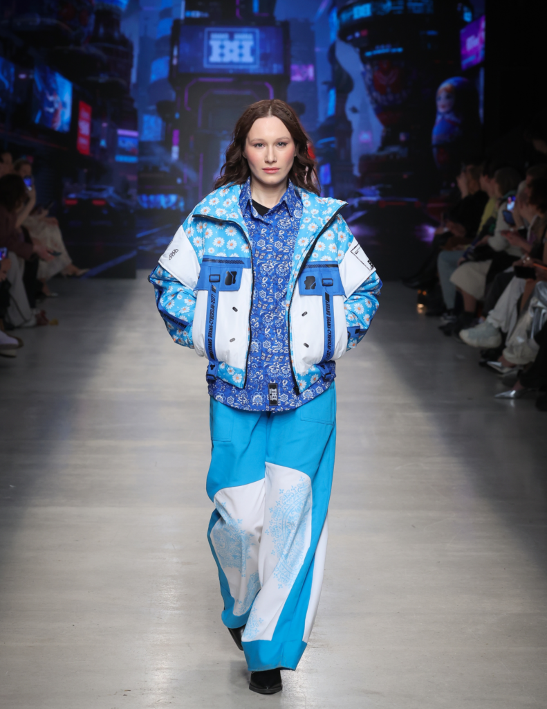На подиумах русский культурный код переплетался с киберпанком, морская эстетика — с вечерней элегантностью, а ретро-футуризм — с современным минимализмом. В это же время в VK Лектории обсуждали, кто сегодня формирует тренды и как мода становится инструментом исследования общества, а в ИИ-примерочной продолжали примерять дизайнерские образы, которые еще не вышли в производство.