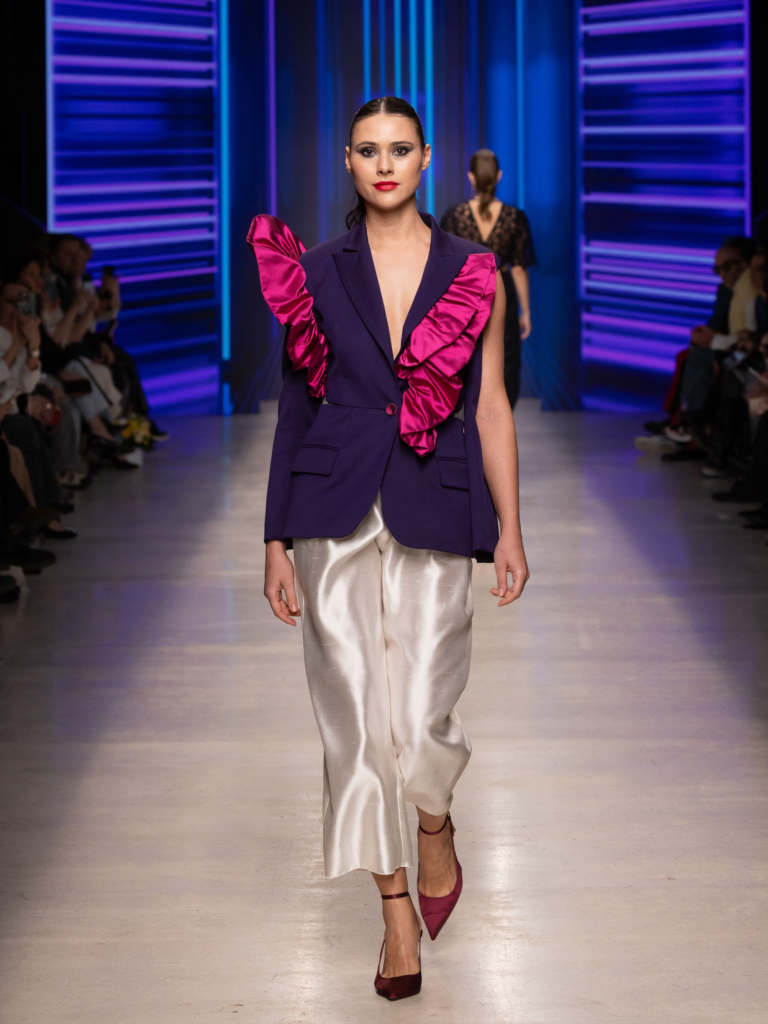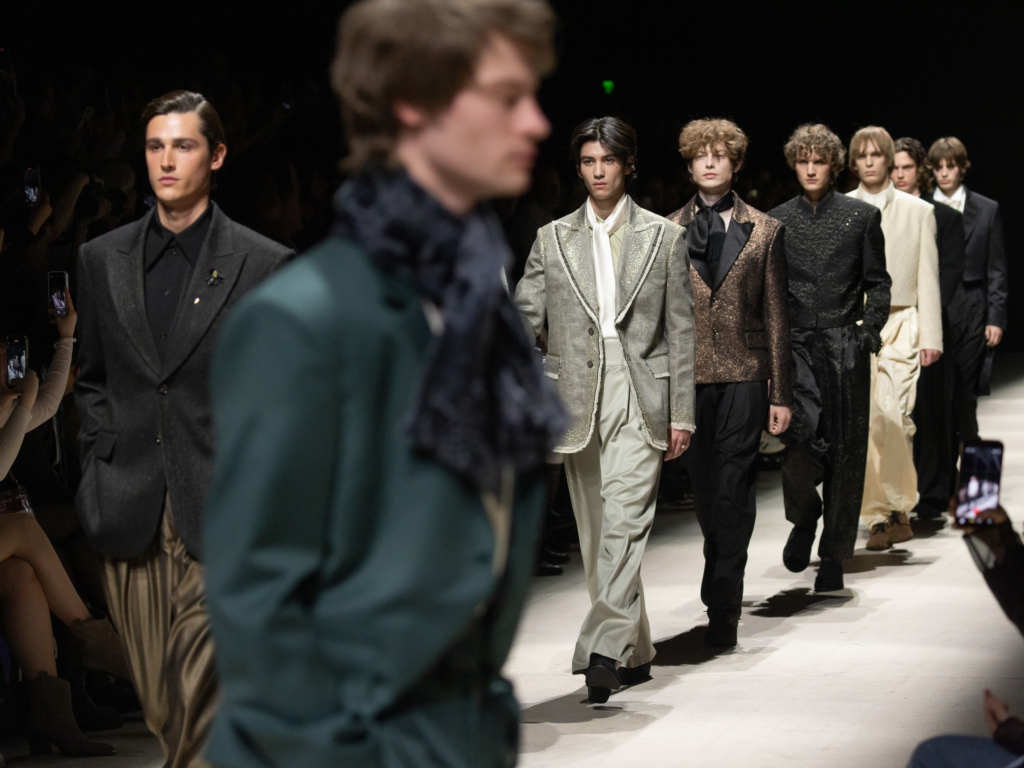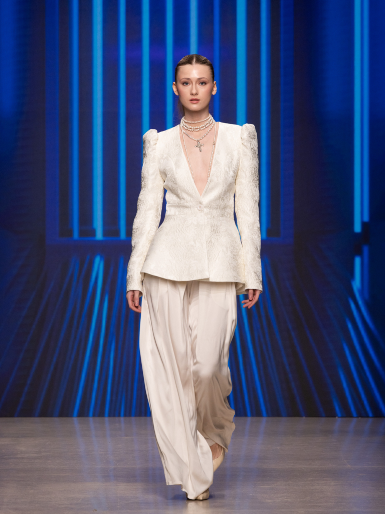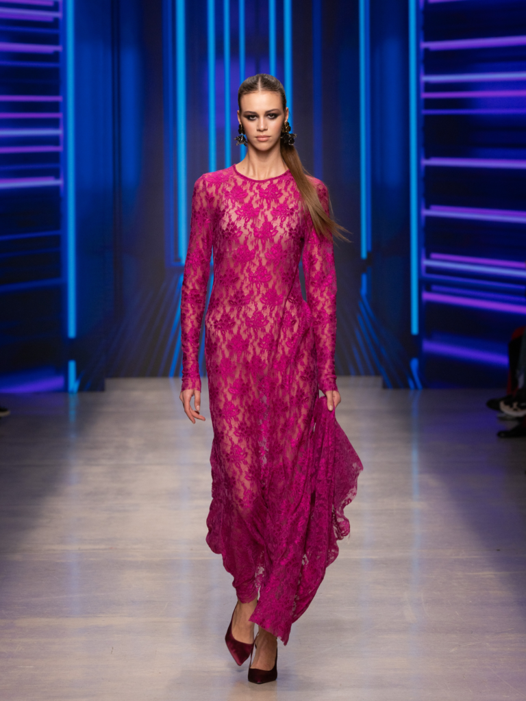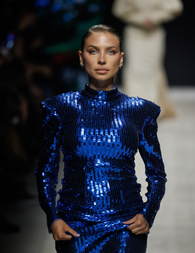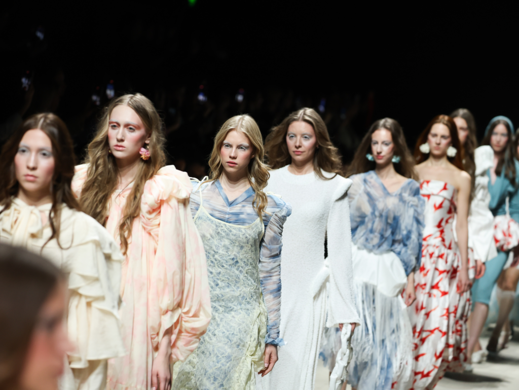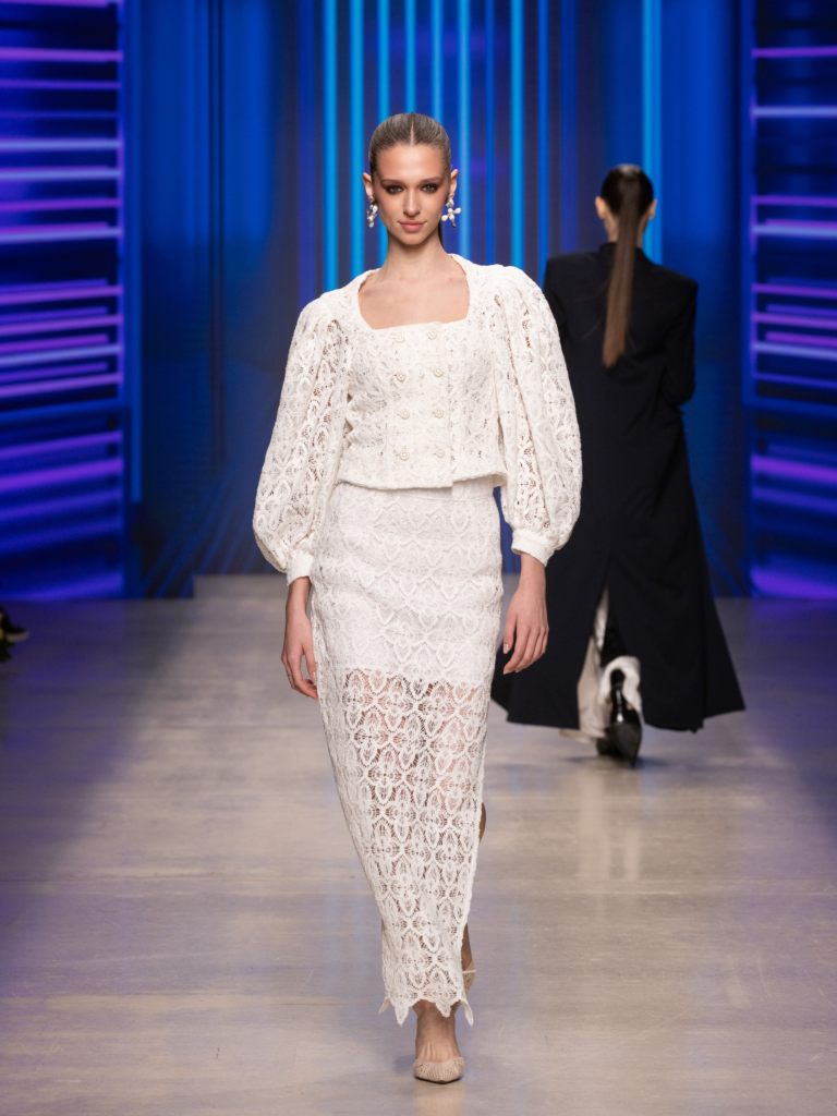 На подиумах русский культурный код переплетался с киберпанком, морская эстетика — с вечерней элегантностью, а ретро-футуризм — с современным минимализмом. В это же время в VK Лектории обсуждали, кто сегодня формирует тренды и как мода становится инструментом исследования общества, а в ИИ-примерочной продолжали примерять дизайнерские образы, которые еще не вышли в производство.