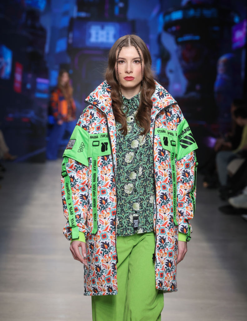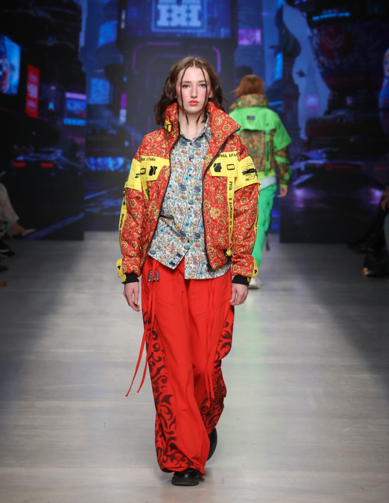 Это смелый эксперимент, рассказывающий о культурном коде и цифровой эстетике. В линейке представлены изделия, переосмысленные через призму киберпанка: традиционные орнаменты сочетались с неоновыми оттенками, народные силуэты приобрели футуристичную геометрию, а славянская
