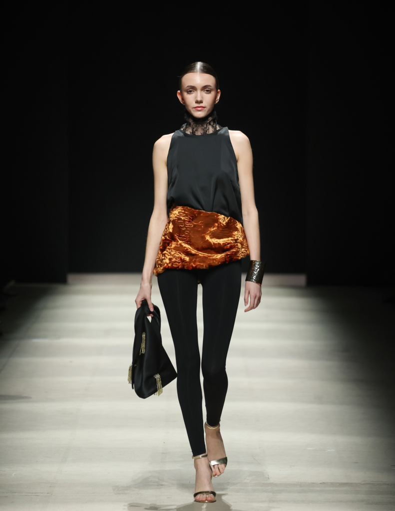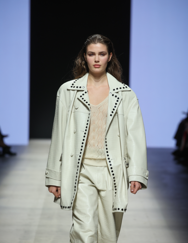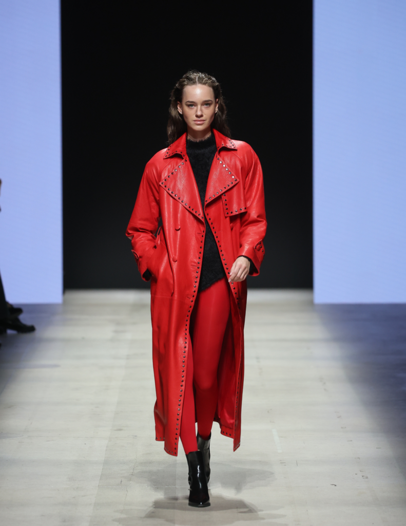 В этот раз бренд предположил, какая верхняя одежда будет в тренде: тренчи с заниженной линией пояса, гусарские жакеты, тисненные под крокодила дерзкие косухи и байкерские куртки с металлизированными заклепками. Также турецкий модный дом включил в свою коллекцию не менее популярные изделия в стиле джапанди. На показе в рамках Московской недели моды образы дополнялись обувью бренда O’SHADE.