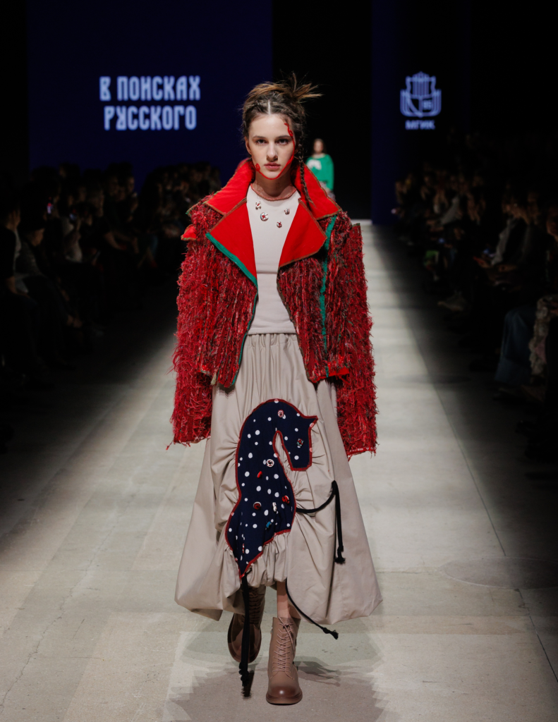 Четвертый день Московской недели моды начался с показа кафедры дизайна и ДПИ МГИК. Студенты представили коллекцию, вдохновленную русскими народными промыслам и культурным наследием — совместная линейка получила название «В поисках русского».