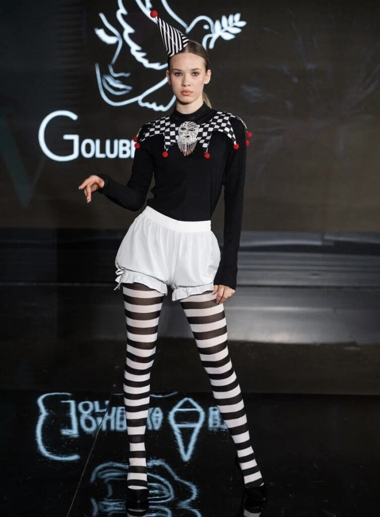 Открывала весенний сезон Ростовской недели моды эксклюзивный показ бренда GolubevaArt (г.Краснодар), показ начался с театрального выступления и заставил с первых минут задуматься публику.