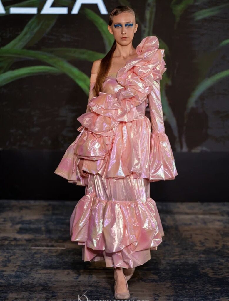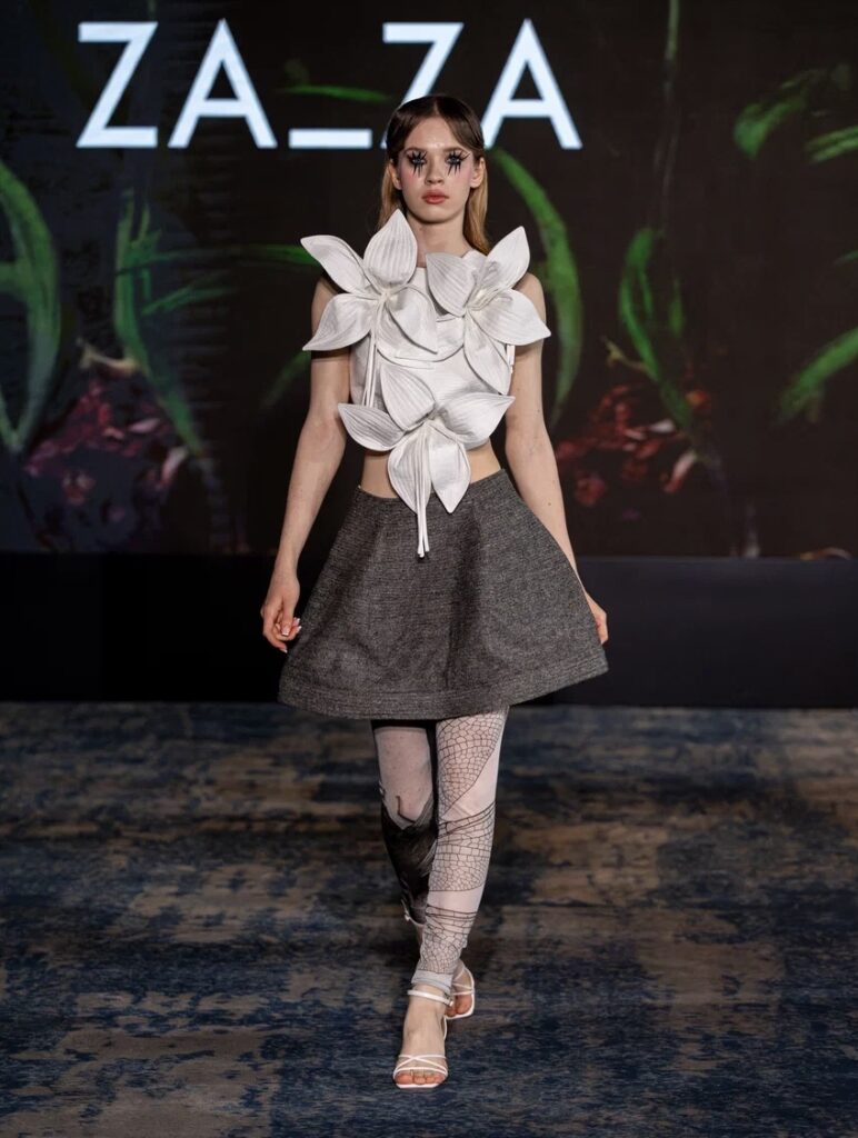 Закрывающий показ сезона — ZA_ZA (СанктПетербург): бренд с яркой международной репутацией, чьи коллекции сочетает эксперименты с формой и цветом и высокое качество исполнения.