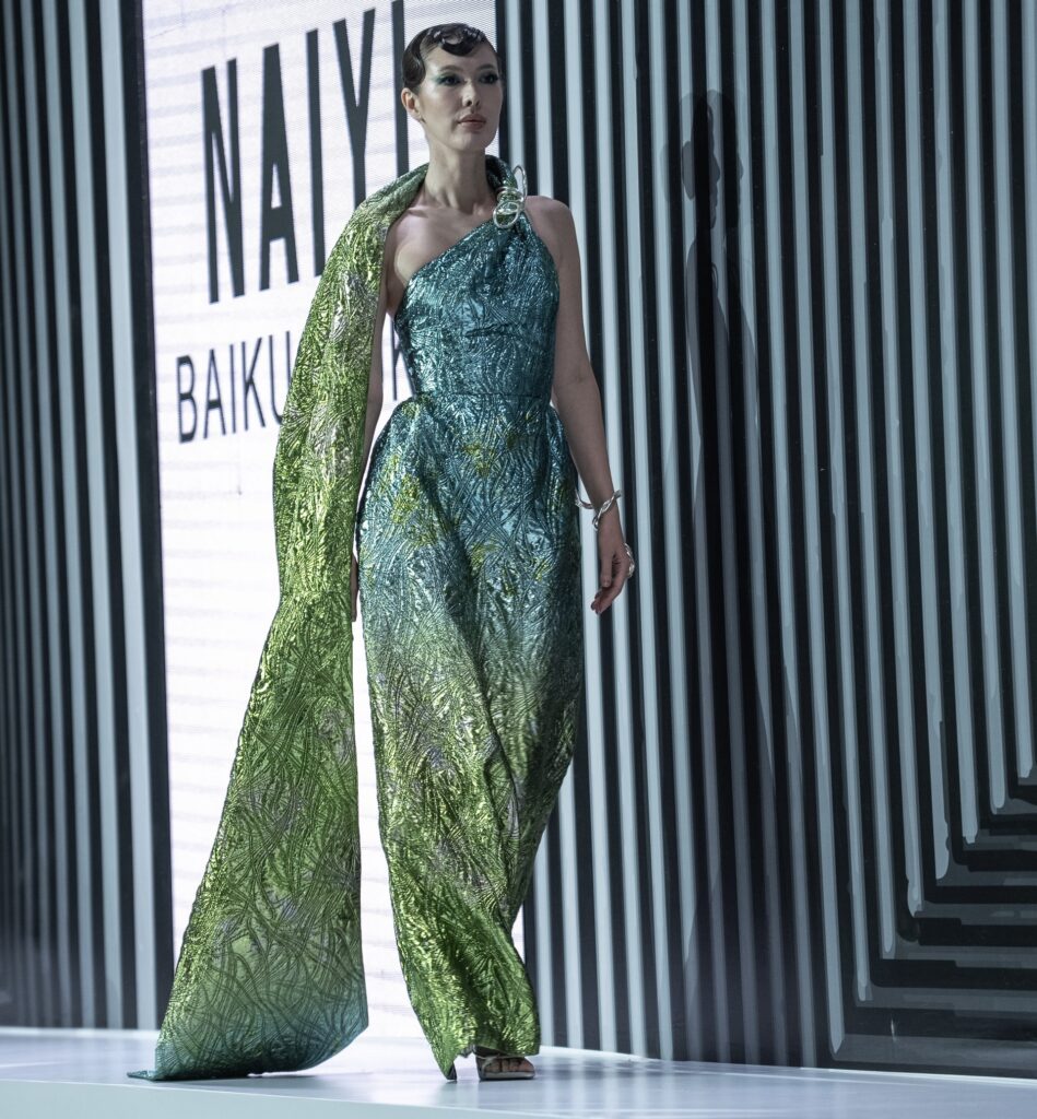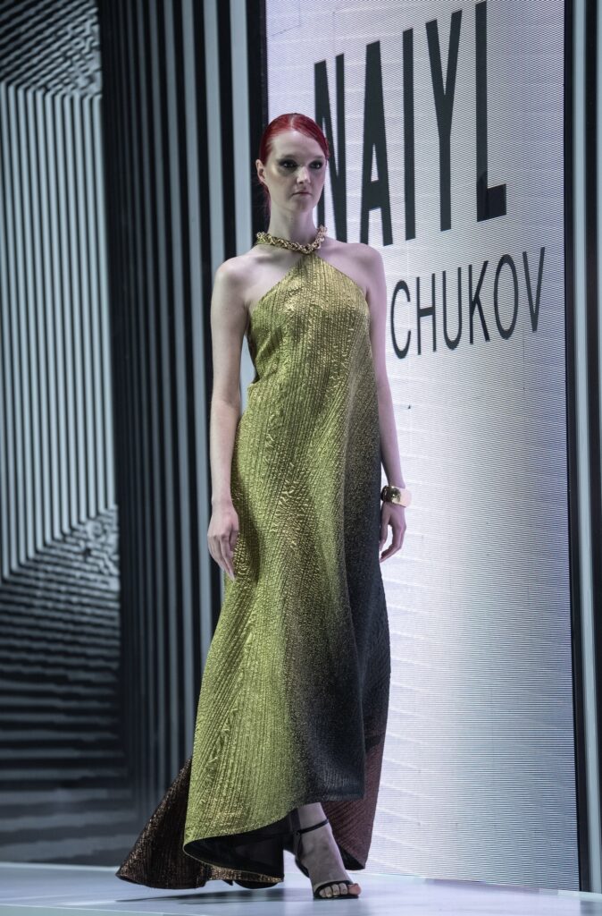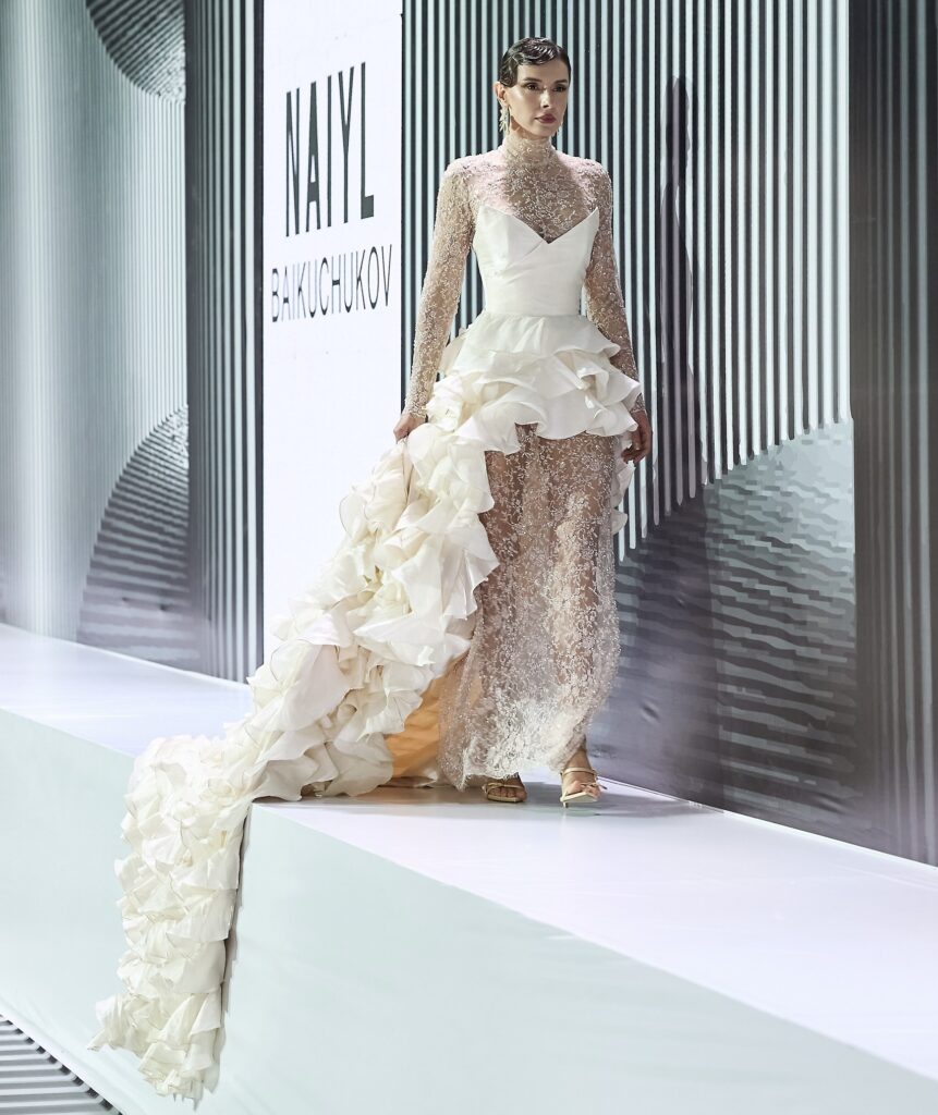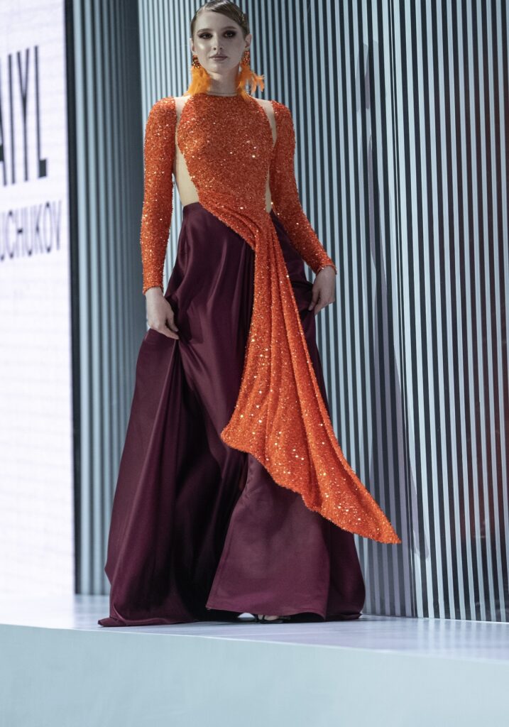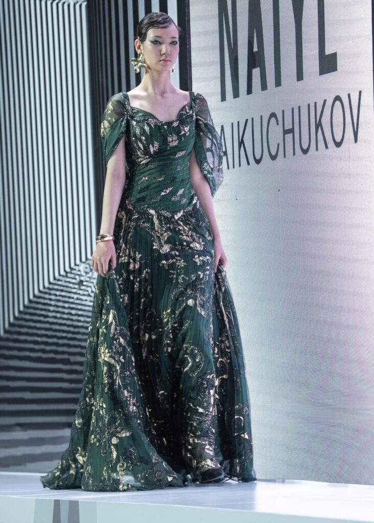Во втором отделении подиум продолжили JARKYN BAIMAKHANOV, AINASH QARA, MUSAVVIR, AJEMI STYLE и NAZAR ALMAZBEKOV, представив коллекции, в которых прослеживаются культурные коды, работа с фактурами и стремление к чистым, выверенным силуэтам.