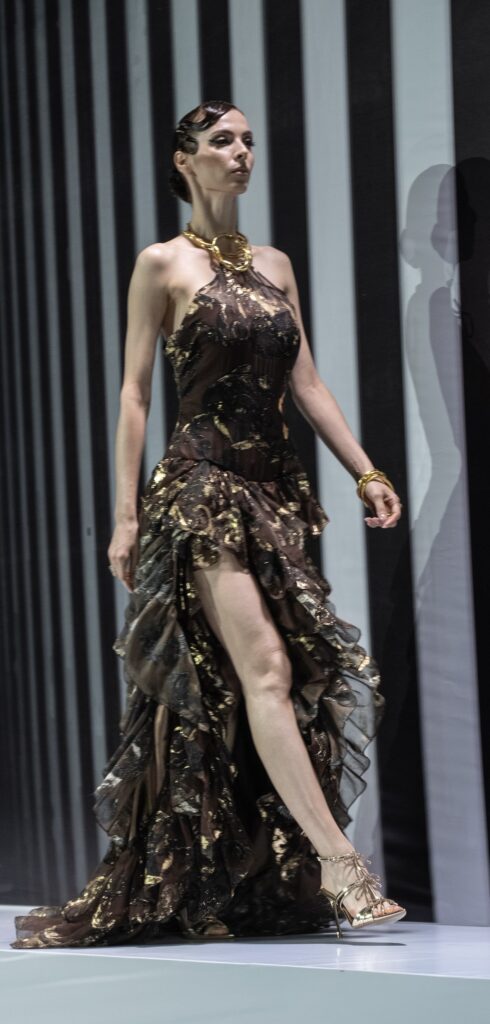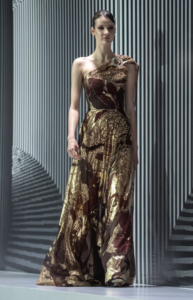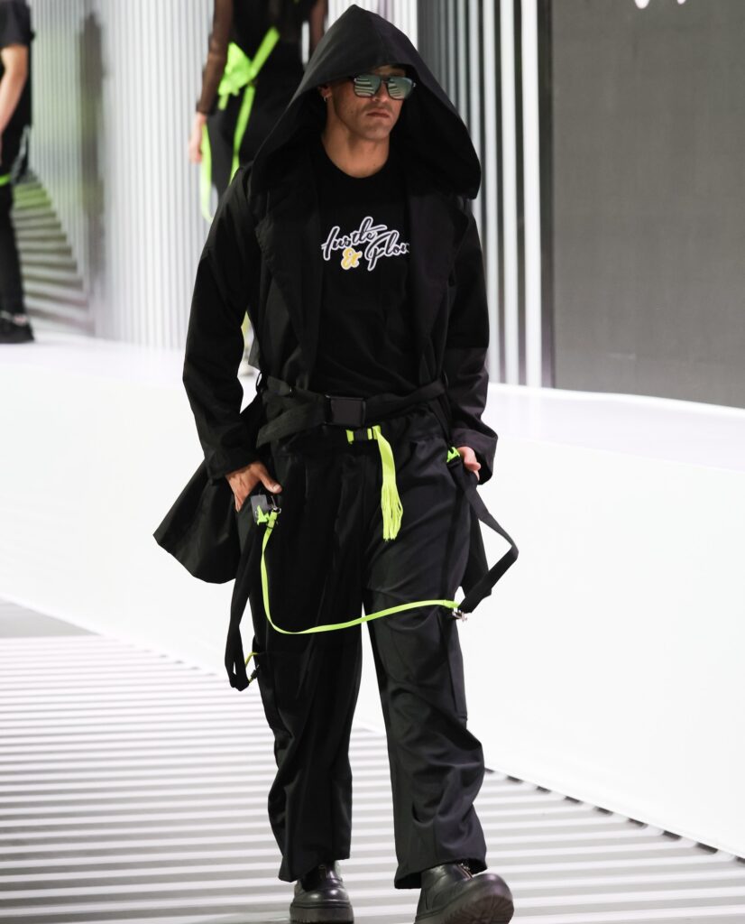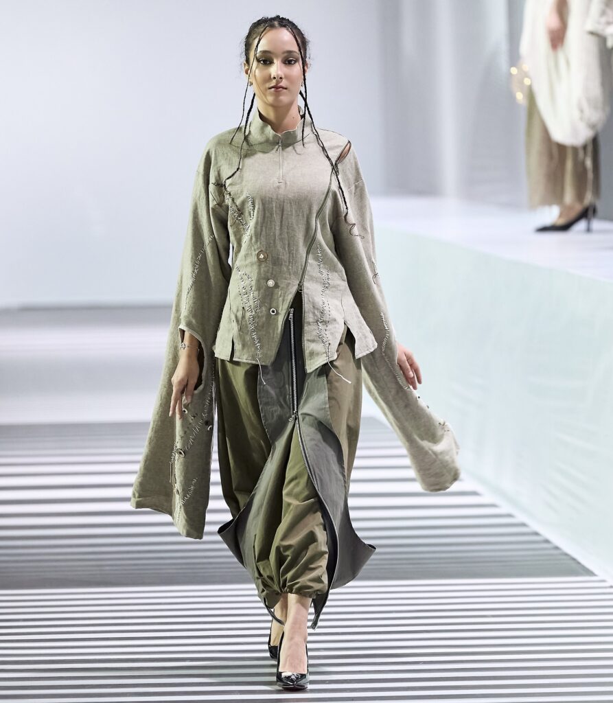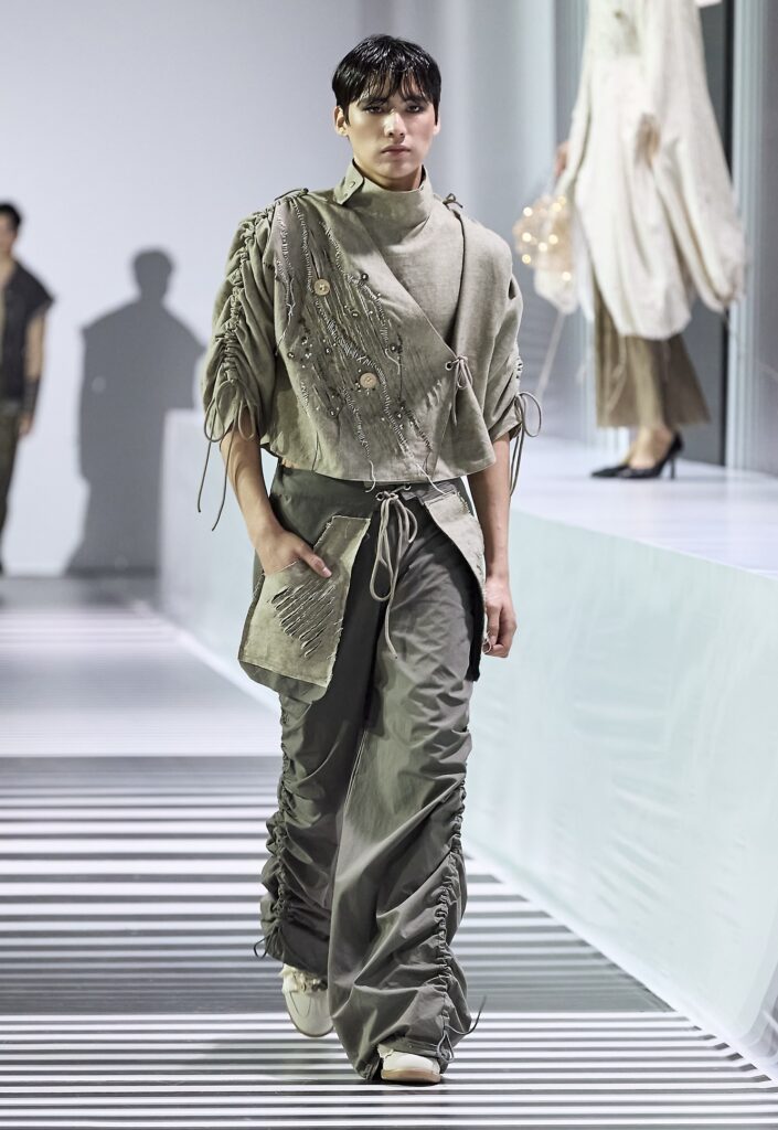 Во втором отделении подиум продолжили JARKYN BAIMAKHANOV, AINASH QARA, MUSAVVIR, AJEMI STYLE и NAZAR ALMAZBEKOV, представив коллекции, в которых прослеживаются культурные коды, работа с фактурами и стремление к чистым, выверенным силуэтам.