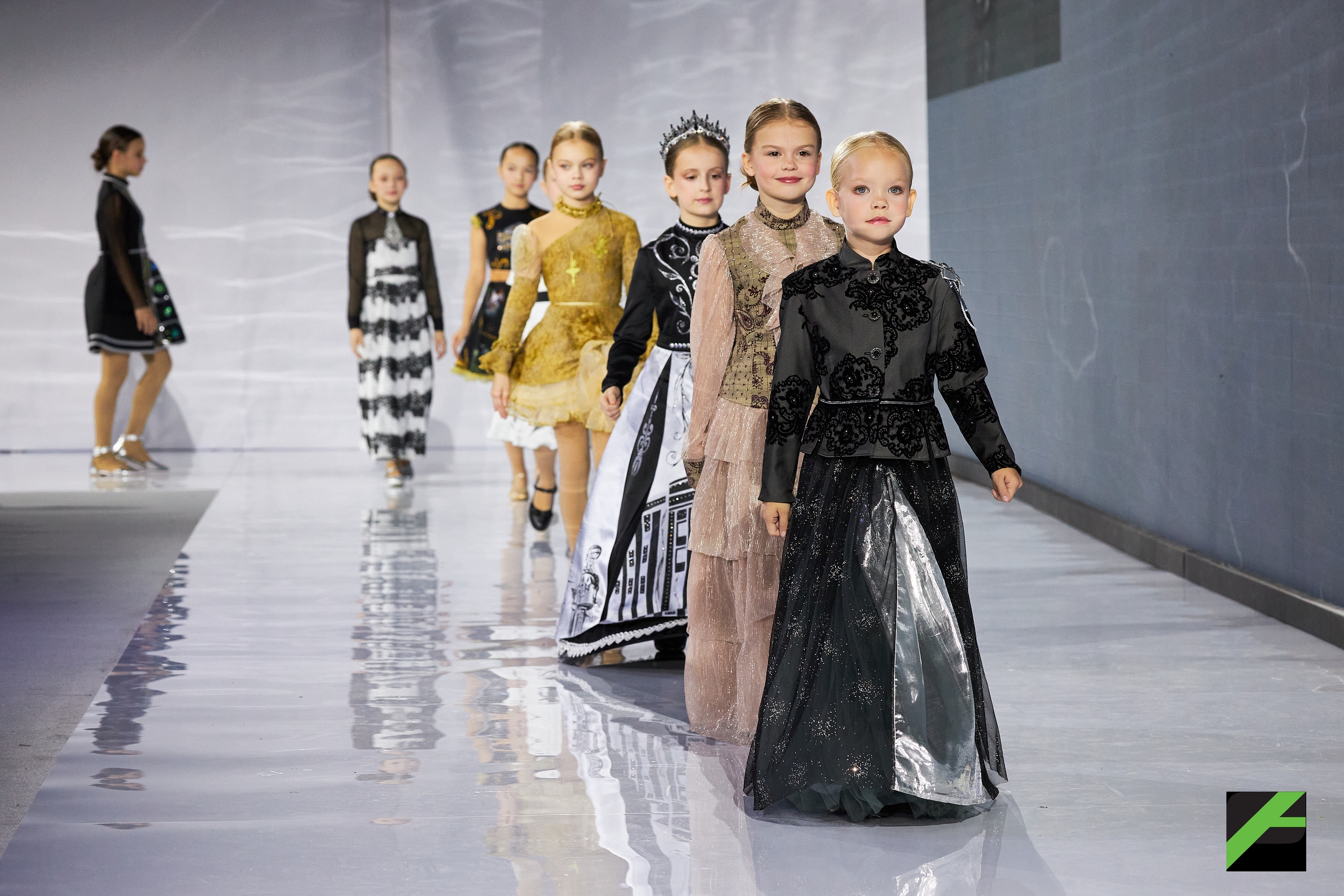 Главным визуальным открытием 2025 года стало необычное оформление концертного зала СПбГУПТД. Пространство превратили в грандиозный кинотеатр: амфитеатр расположился напротив огромного экрана во всю ширину подиума. Это решение делало каждый показ масштабным зрелищем, где мода и динамичный видеоряд сливались в завораживающий спектакль.