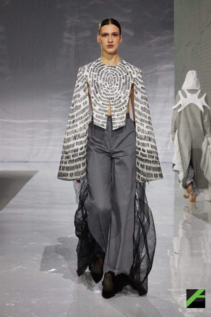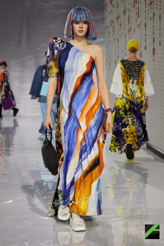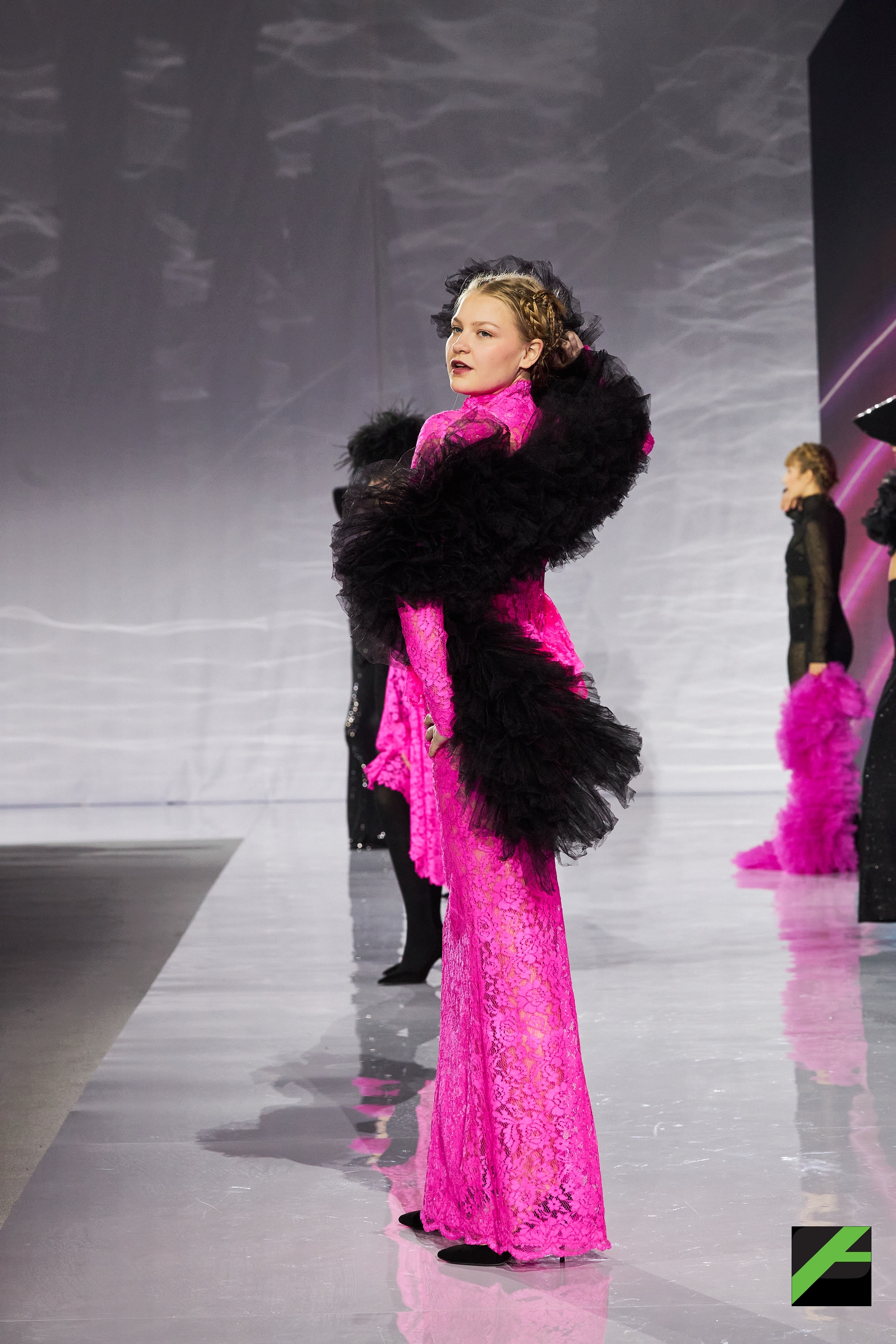 Публика увидела работы самых разных авторов и брендов. Среди них – «Morpheus» от китайского бренда «СюнрУ» и студентки СПбГУПТД, петербургской художницы Лизы Анисимовой, представляющий собой уникальный синтез культурных кодов.