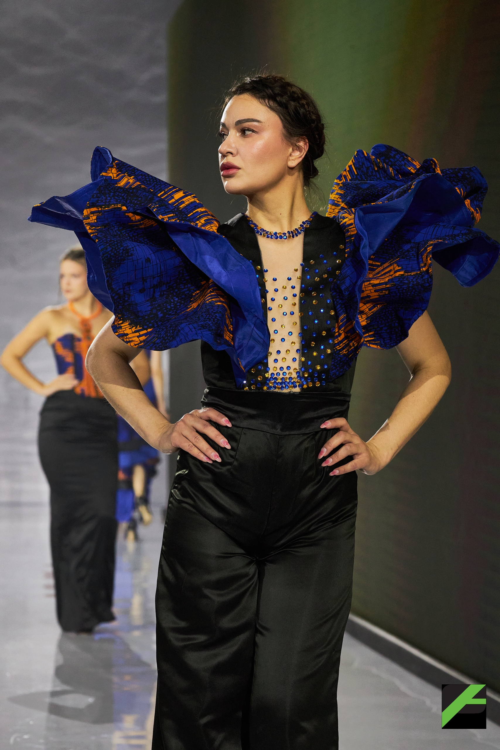 Особое внимание привлекла коллекция «Royalty» – «Королевское достоинство» молодого дизайнера Хансины Торомба из Намибии. Это работа в африканском стиле, которая воспевает красоту намибийского пейзажа, сочетая смелые национальные принты с элегантной свадебной эстетикой.