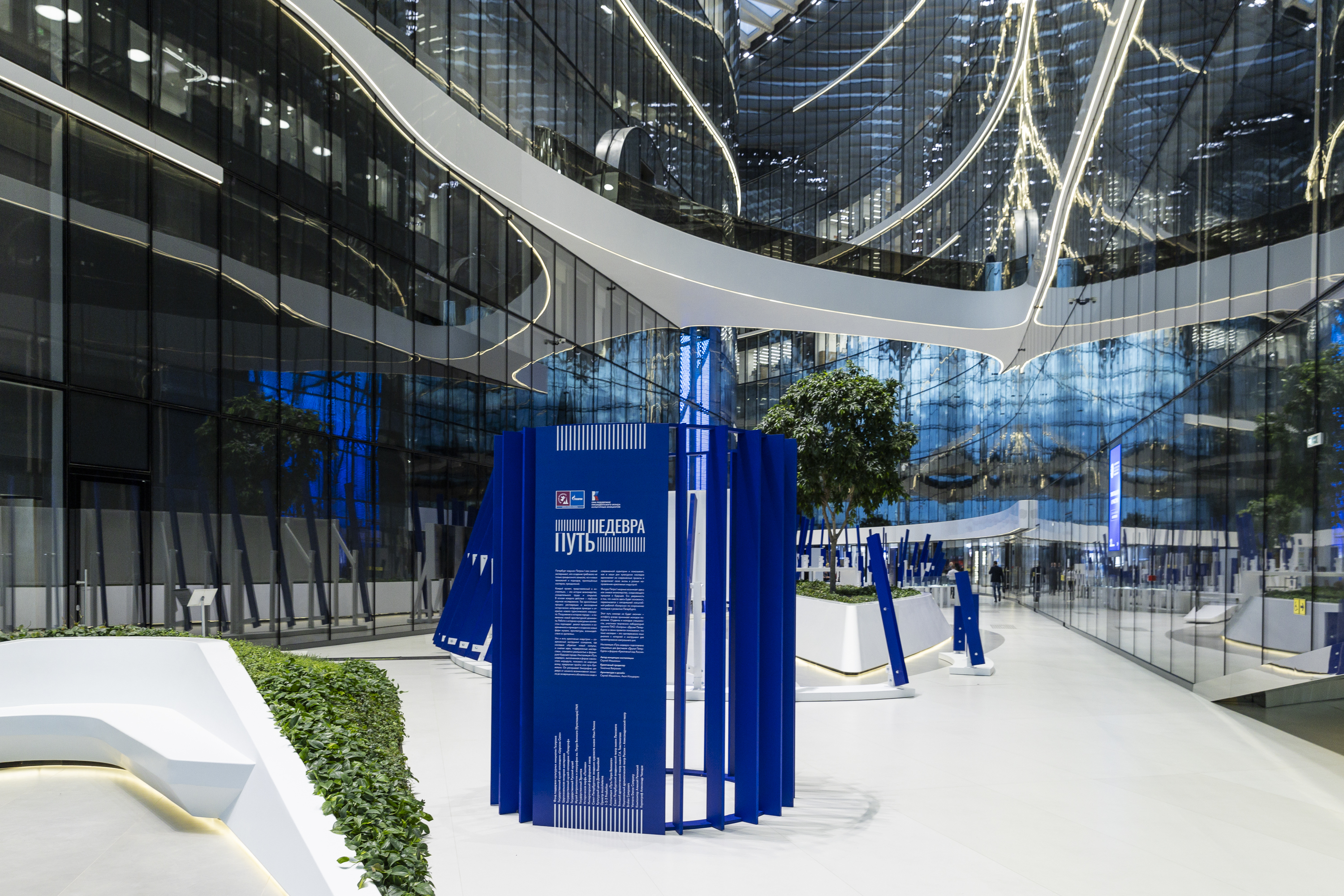 Инсталляция «Путь шедевра», расположенная в атриуме небоскрёба, представляет собой маршрут протяжённостью более 200 метров. Посетители смогут пройти этот путь и познакомиться с проектами, каждый из которых — история визионерства, созидательного труда и открытий. В их основе — глубокое научное исследование.
