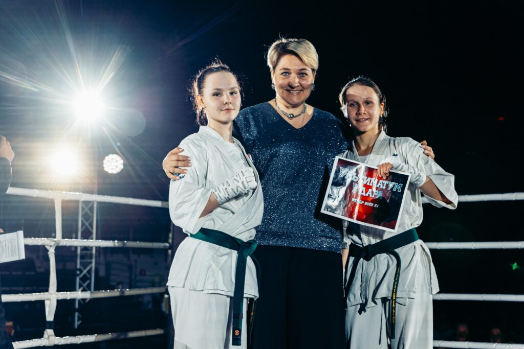Впервые в истории «Ультиматум Удара» состоялся женский бой. Две юные чемпионки России 15-летняя Анастасия Похомова и 18-летняя Ульяна Евдакова показали всю мощь и эстетику киокушинкай карате. Обе петербургские спортсменки держались четыре раунда, в итоге жюри присудило победу Ульяне Евдаковой.