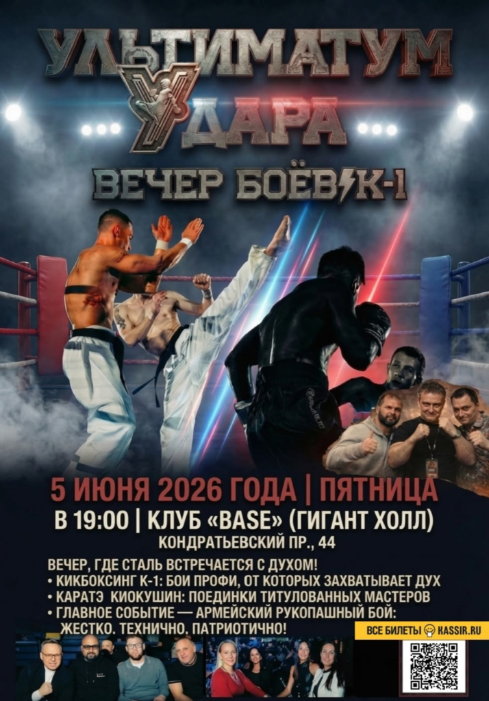 5 июня Санкт-Петербург вновь станет эпицентром больших единоборств. В стенах легендарного клуба BASE (Гигант-холл) состоится грандиозный вечер профессиональных поединков — «Ультиматум Удара».