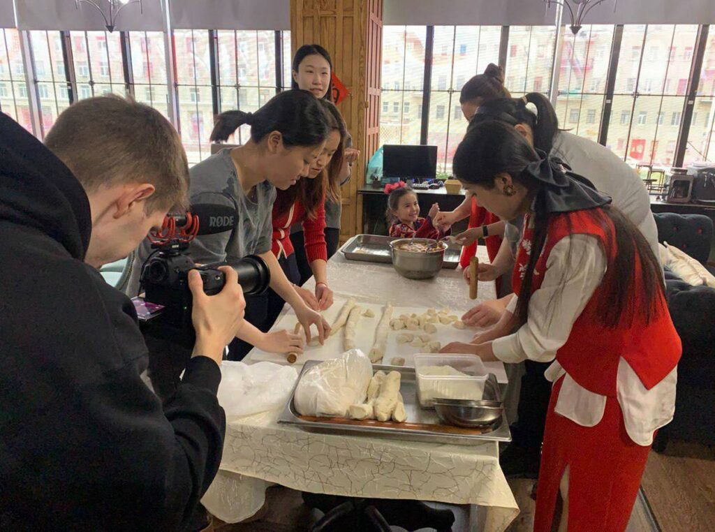 Готовясь к съемкам нового документального фильма, мы побывали в Китайском культурном центре на Лиговском проспекте, где вместе хозяевами лепили китайские пельмени – традиционное для Новогоднего стола угощение. Для нас исполняла народные песни руководитель центра известная оперная певица Пэн Иньлай. На следующий день мы побывали в ФИНЭКе, где учатся студенты из КНР, а наши активно изучают китайский… Увидели торжественное шествие с драконом и танцы с веером, а потом наблюдали за мастер-классами по традиционному плетению, изготовлению фонариков и других типичных новогодних украшений. Генеральный консул КНР В Санкт-Петербурге Ло Чжаньхуэй подчеркнул, что обычно в Новый год хочется домой, но в Петербурге ему так комфортно, что он живет и работает здесь, как у себя дома. Так постепенно в радостной атмосфере начинается сбор материала для нашего фильма, рассказывающего о многовековых связях России и Петербурга с Китаем, которые в наше время только крепнут», – рассказал автор фильма Анатолий Аграфенин.