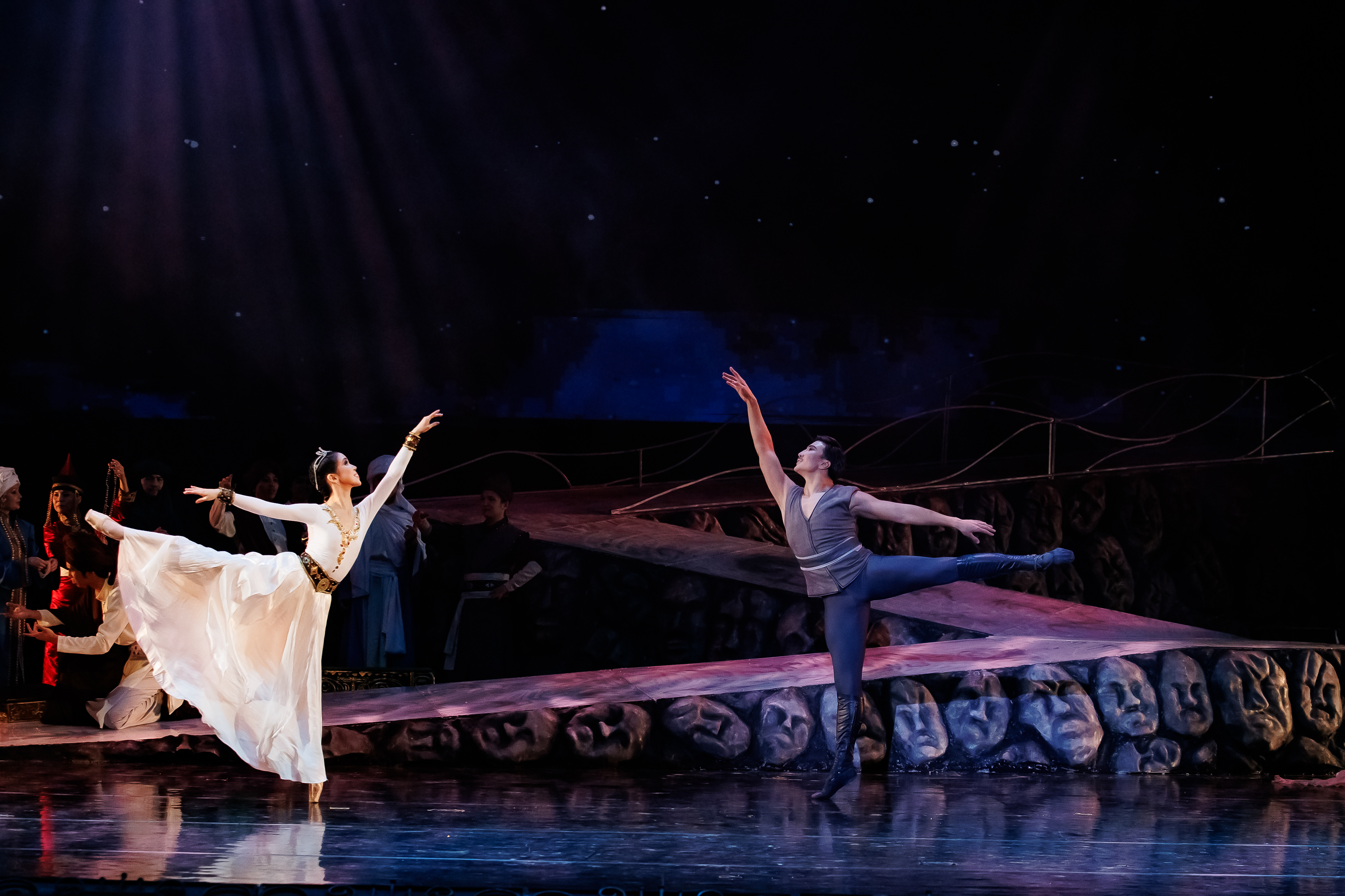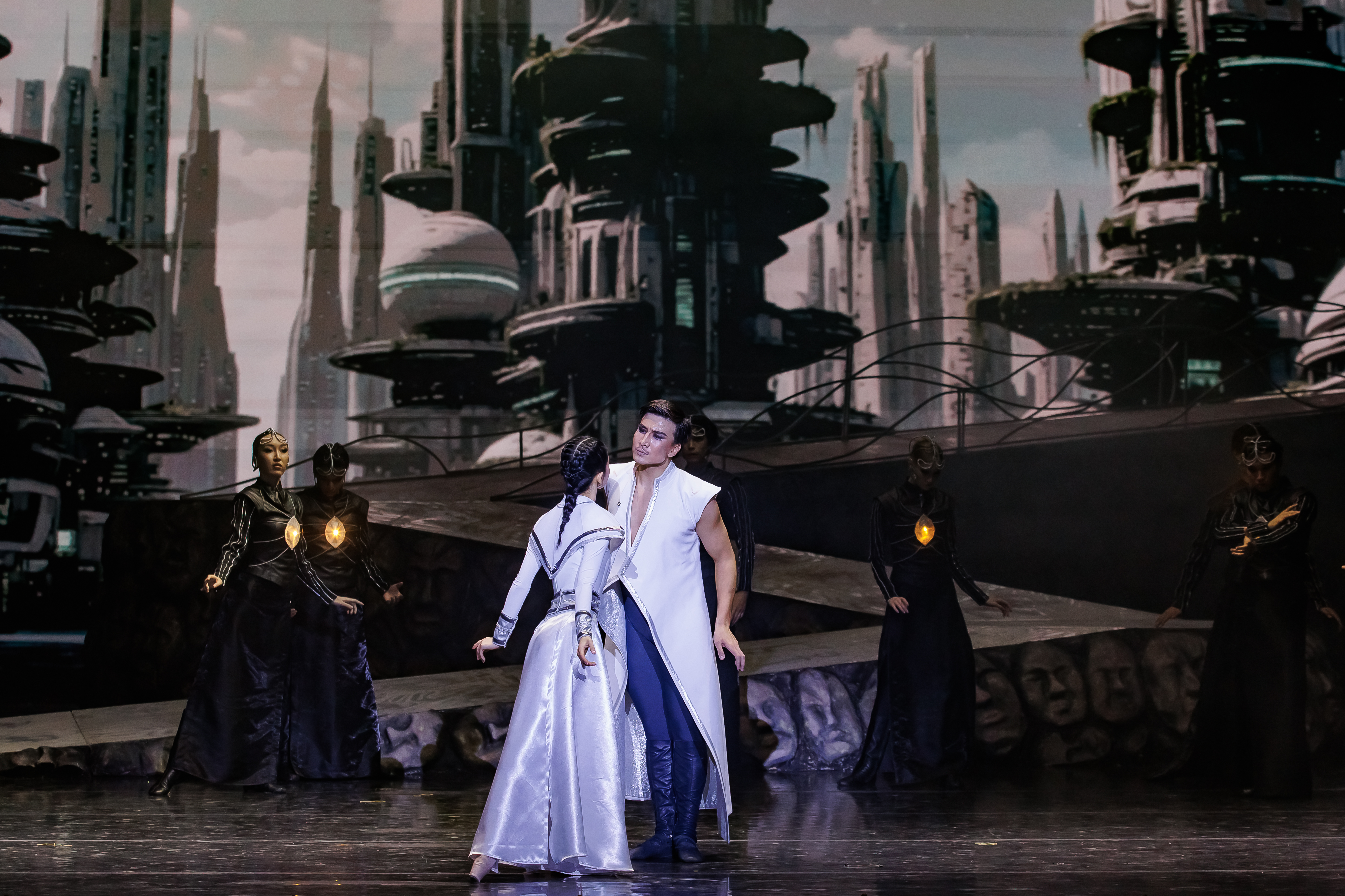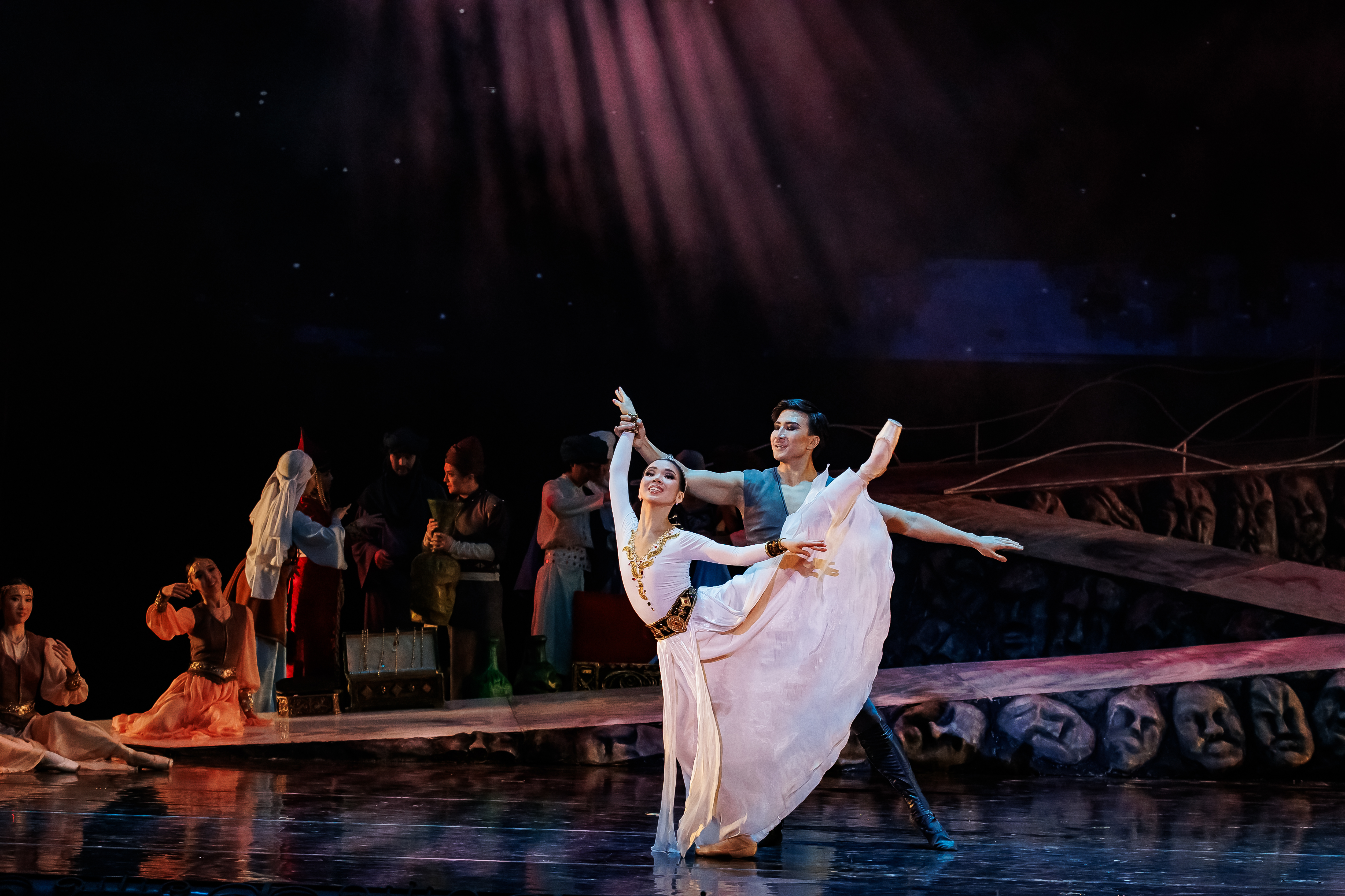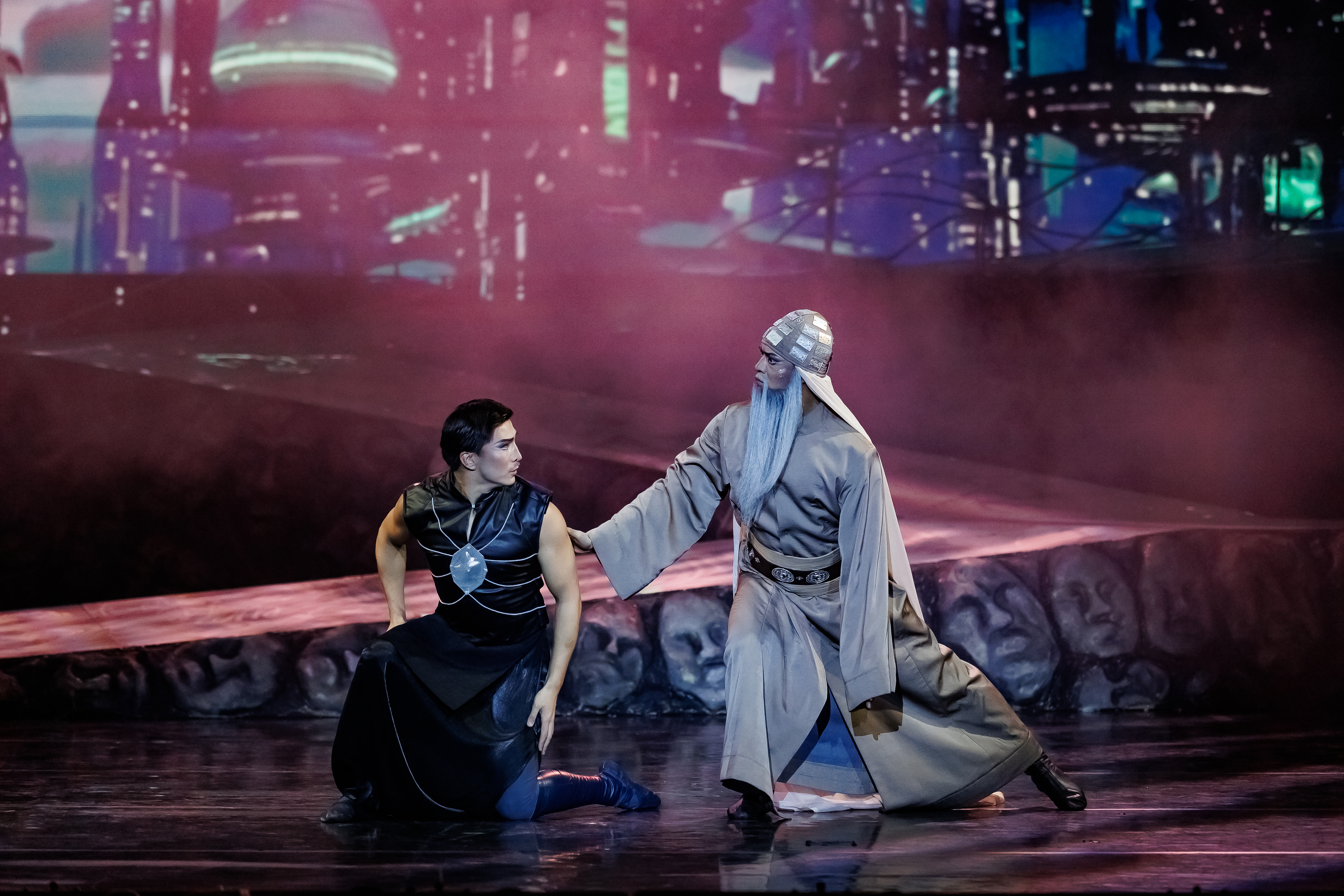 — грандиозной постановки, созданной народной артисткой Казахстана Гульжан Туткибаевой. Автор музыки — казахстанский композитор Айгерим Еркебаева, дирижер – постановщик Куаныш Исмаилов, Сценография и костюмы— Александра Рычкова, художник по свету — лауреат премии «Золотая Маска» Татьяна Мишина (Москва), художник по видеоконтенту — Марат Сагадинов. Спектакль стал одним из ключевых событий 92-сезона и прошёл с аншлагом, объединив философскую притчу, современную эстетику и богатое наследие Великого Шёлкового пути.