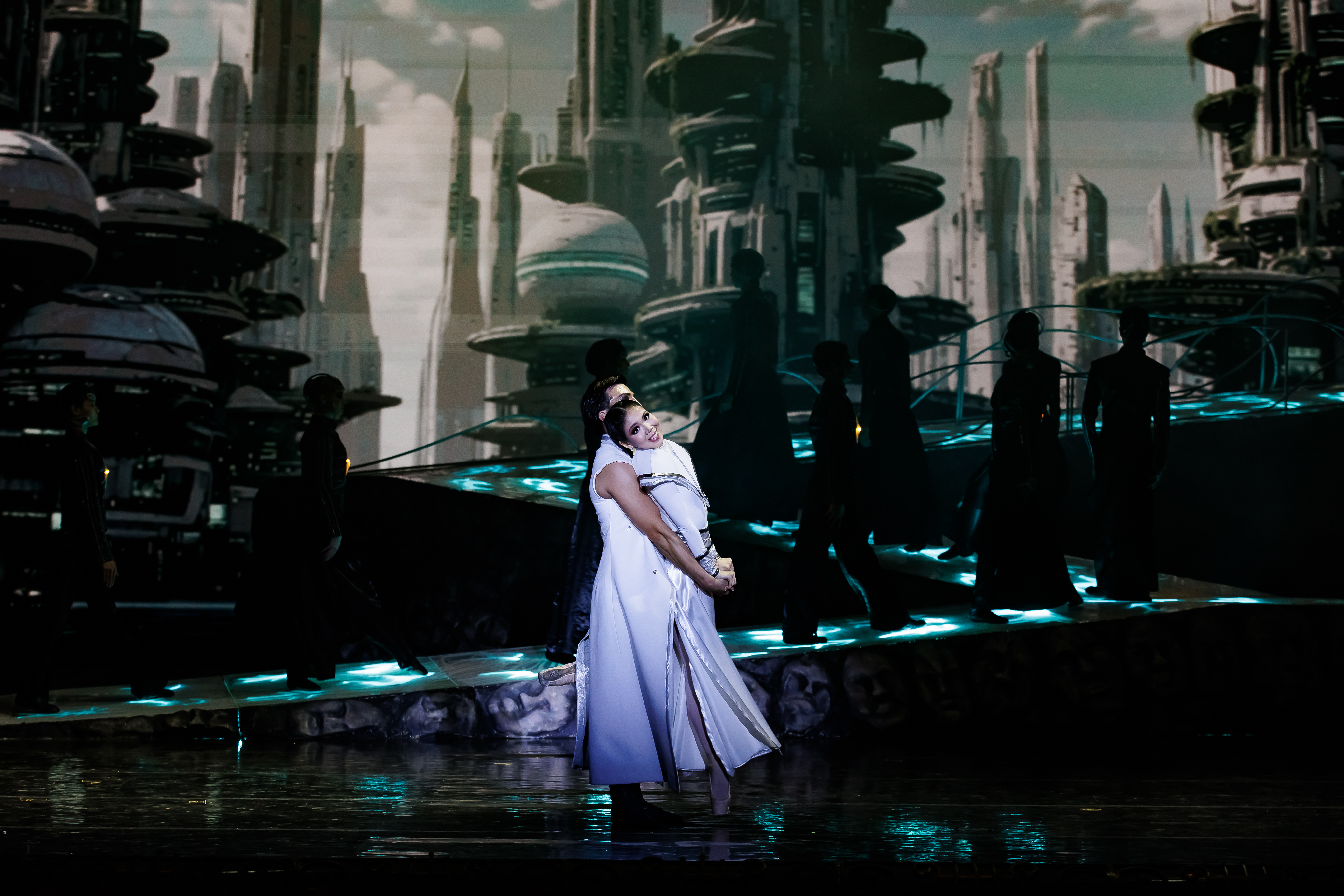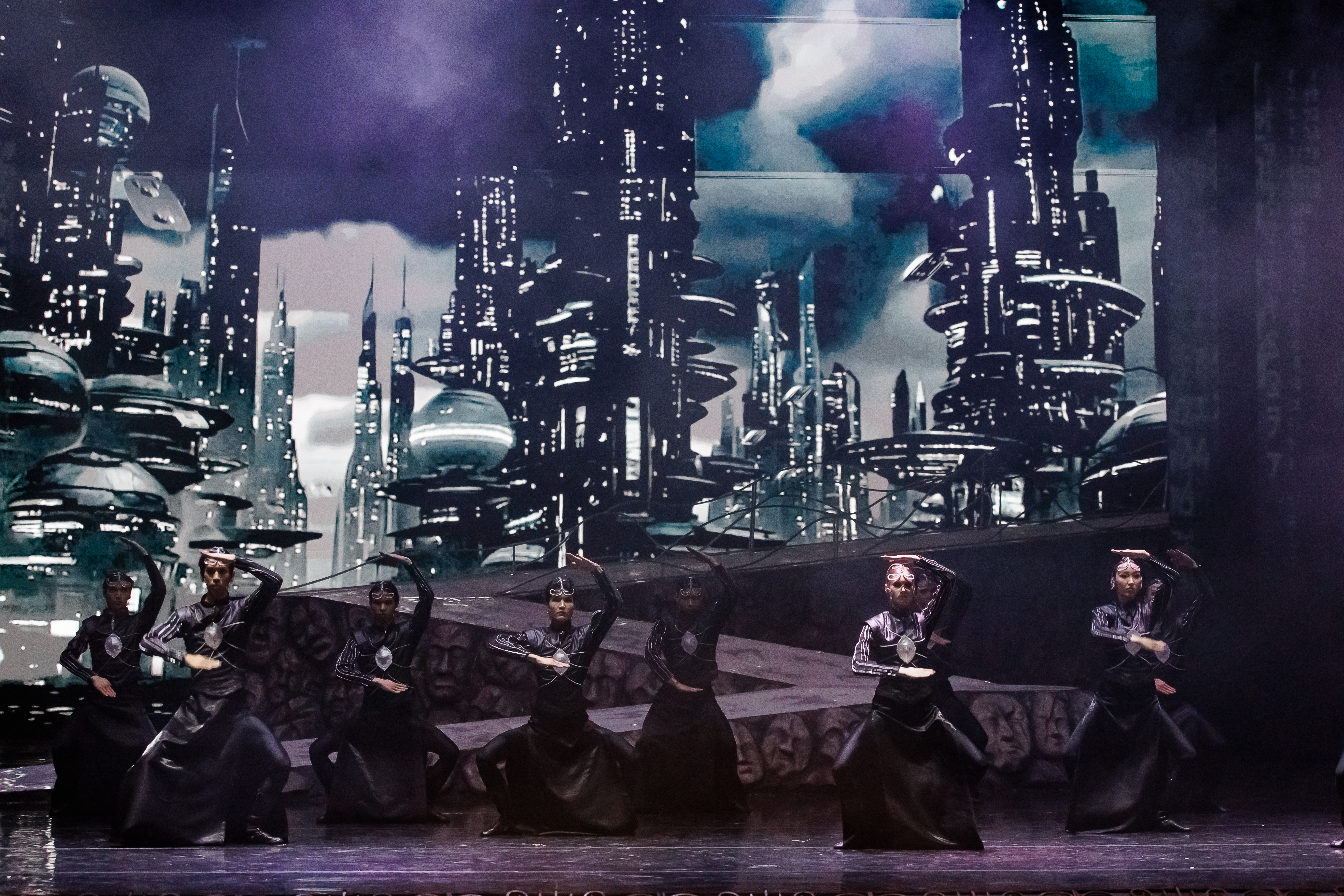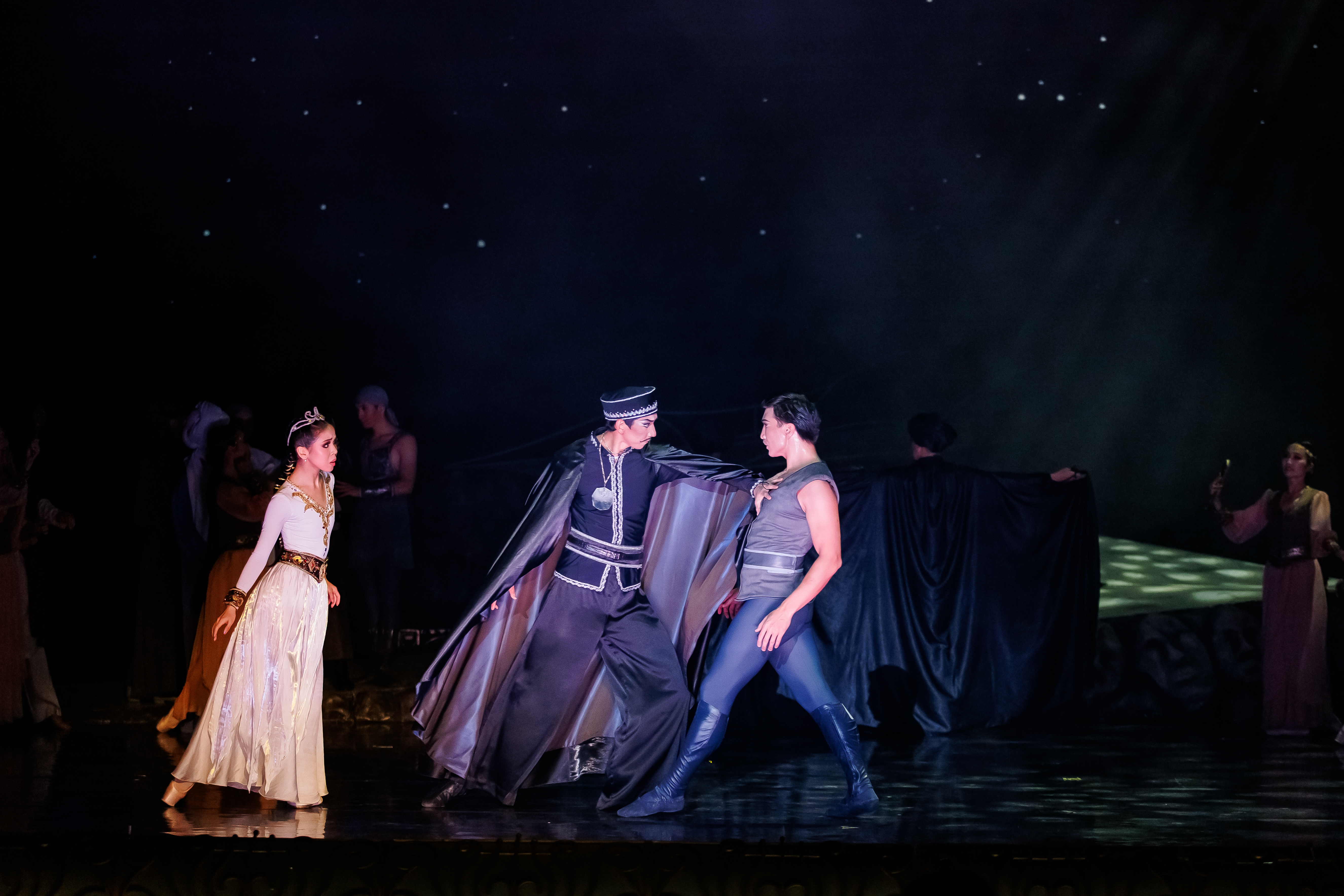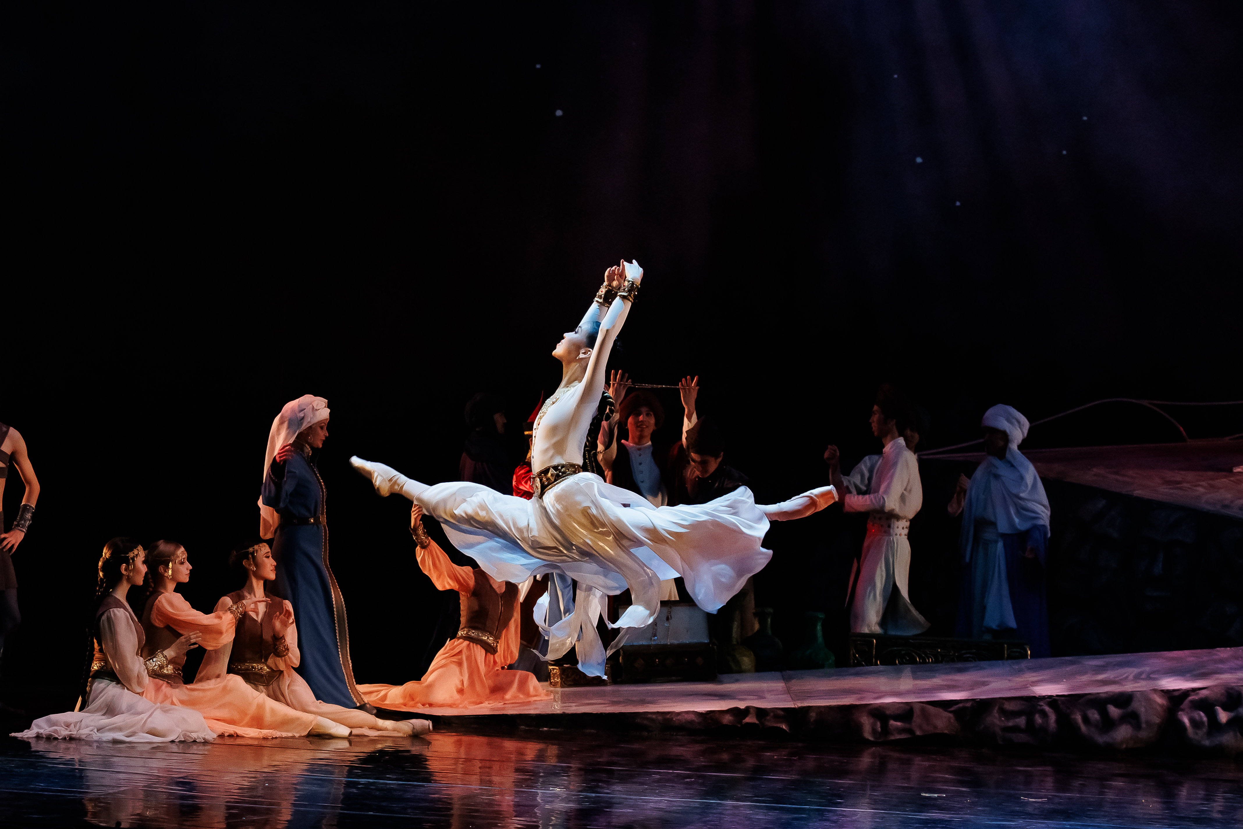 — грандиозной постановки, созданной народной артисткой Казахстана Гульжан Туткибаевой. Автор музыки — казахстанский композитор Айгерим Еркебаева, дирижер – постановщик Куаныш Исмаилов, Сценография и костюмы— Александра Рычкова, художник по свету — лауреат премии «Золотая Маска» Татьяна Мишина (Москва), художник по видеоконтенту — Марат Сагадинов. Спектакль стал одним из ключевых событий 92-сезона и прошёл с аншлагом, объединив философскую притчу, современную эстетику и богатое наследие Великого Шёлкового пути.